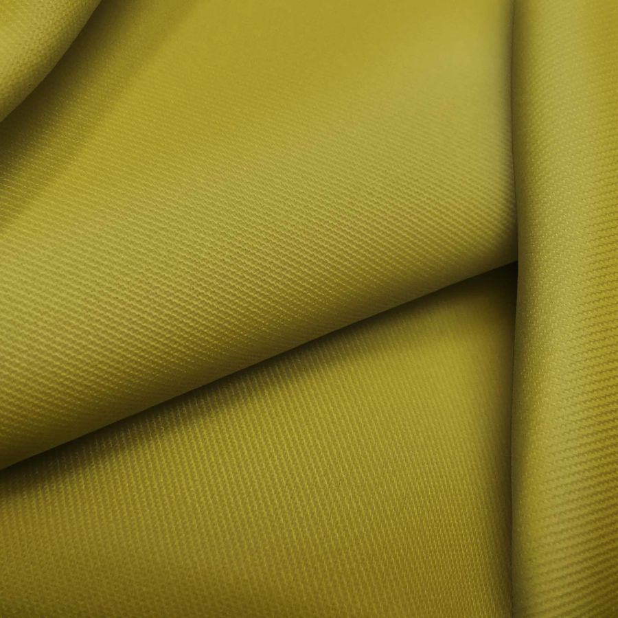 La tela base es Sarga - Prada, una sarga compuesta por 96% poliéster y 4% elastano, con un gramaje de 220 gr/m2 y un ancho de 150 cm. El color liso impreso es un verde olivo, con un CMYK de 40 35 100 20, que refleja una mezcla de tinta cian, magenta, amarillo y negro. El color secundario tiene una connotación simbólica relacionada con la naturaleza y la tranquilidad, con una tonalidad suave que transmite armonía y equilibrio.