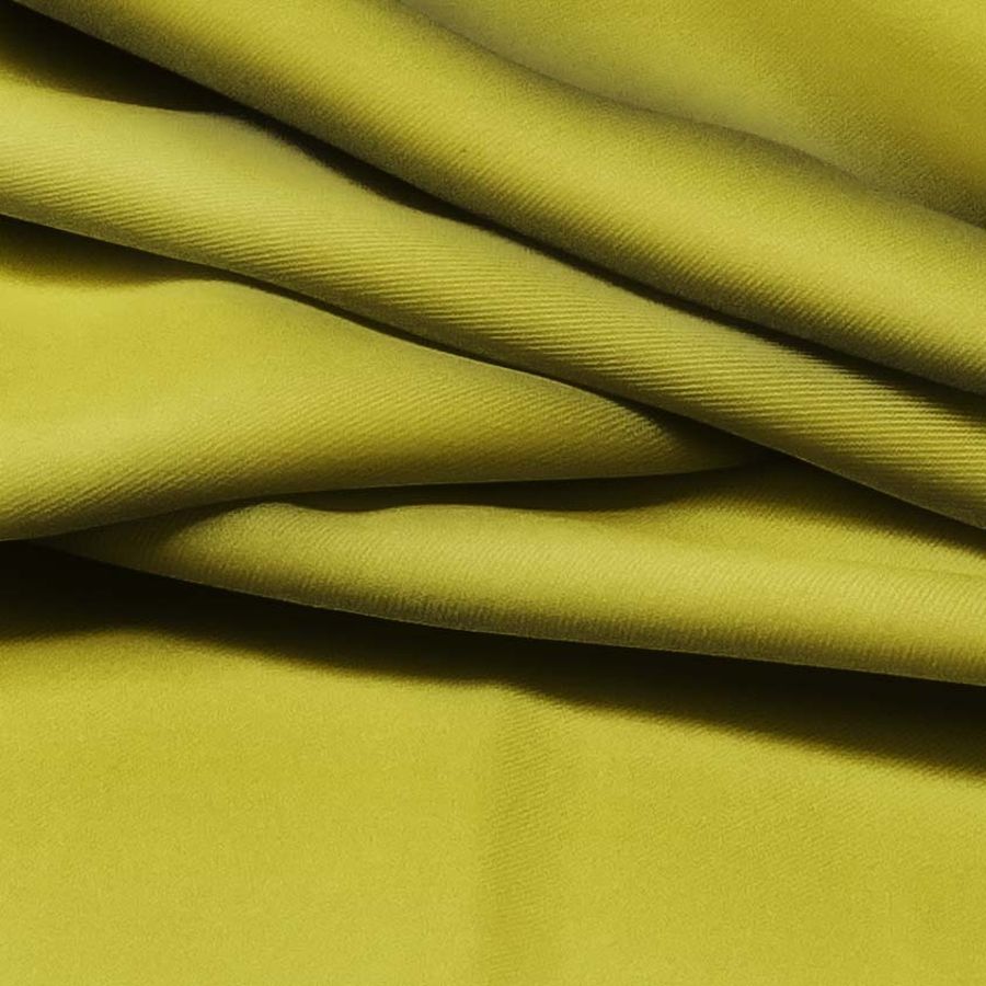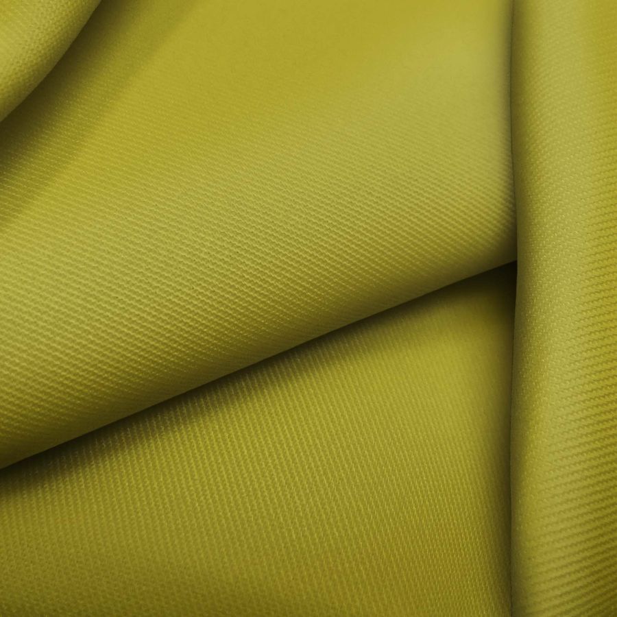La tela base de este tejido es una sarga compuesta por un 96% de poliéster y un 4% de elastano, con un gramaje de 220 gr/m2 y un ancho de 150 cm. El color liso impreso es de un verde olivo, cuyo CMYK es de 40 31 100 15, y que hace referencia a una combinación de tonalidades verdes y amarillas. Este color se asocia con la naturaleza, la frescura y la vitalidad, y es ideal para crear prendas frescas y elegantes.