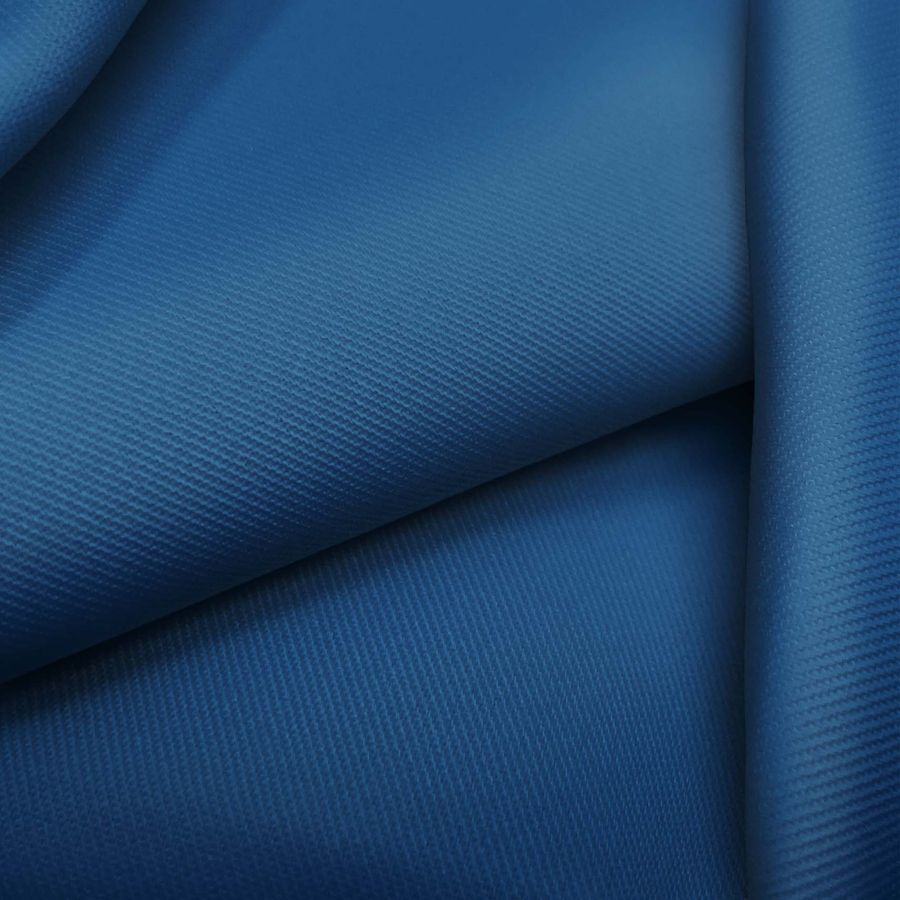 La tela base de este tejido es la Sarga- Prada, compuesta por un 96% de poliéster y un 4% de elastano, con un gramaje de 220 gr/m2 y un ancho de 150 cm. El color liso impreso es un tono Azul Lapislázuli, que se consigue con una combinación de tinta Cyan (99), Magenta (73), Yellow (30) y Black (15), reflejando un perfil de color CMYK de 99 73 30 15.