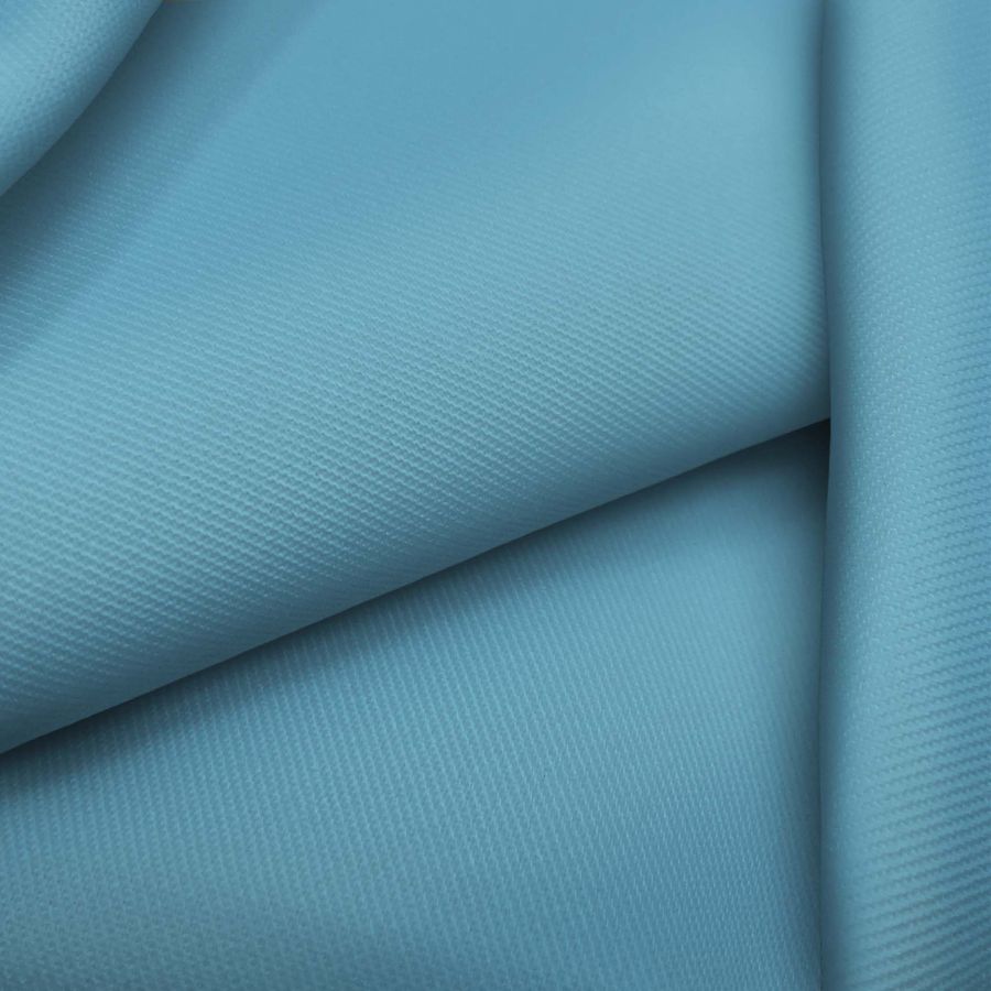 La tela base de este tejido es la sarga Prada, compuesta principalmente por poliéster y elastano y con un gramaje de 220 gr/m2 y un ancho de 150 cm. El color liso impreso es un azul hielo glacial, cuyo CMYK es 63 21 17 1. Este color representa la serenidad y la claridad, proporcionando sensaciones de frescura e incluso calma. Es un color que combina muy bien con tonalidades grises y blancas. Cabe destacar que la tela está impresa a una sola cara por impresión digital textil, por lo que el color liso impreso es exclusivo de esta cara.
