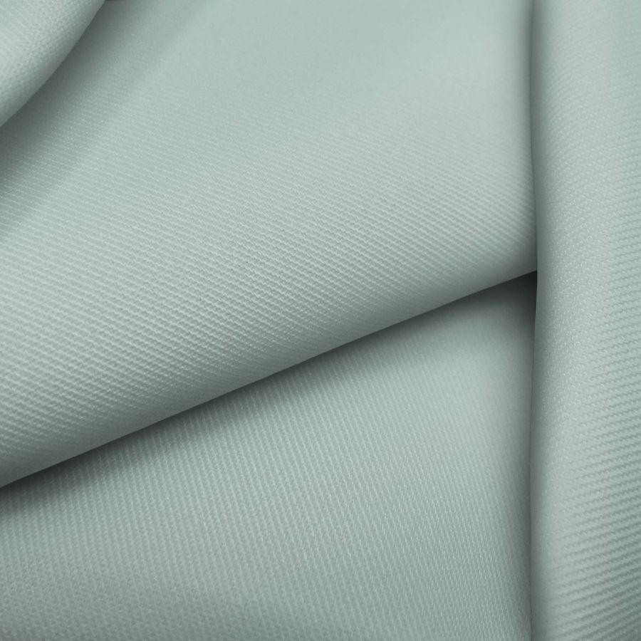 La tela base de este tejido es una sarga de composición 96% poliéster y 4% elastano, con un gramaje de 220 gr/m2 y un ancho de 150 cm. Su color liso impreso es un verde azuloso, con un CMYK de 35 10 26 0. Este color refleja una combinación de cian, magenta y amarillo, junto con un porcentaje mínimo de tinta negra. Este tono de verde azulado es muy versátil y combina bien con otros colores como el blanco, el gris, el negro y el beige. La tela está impresa con este color liso en una sola cara mediante impresión digital textil.