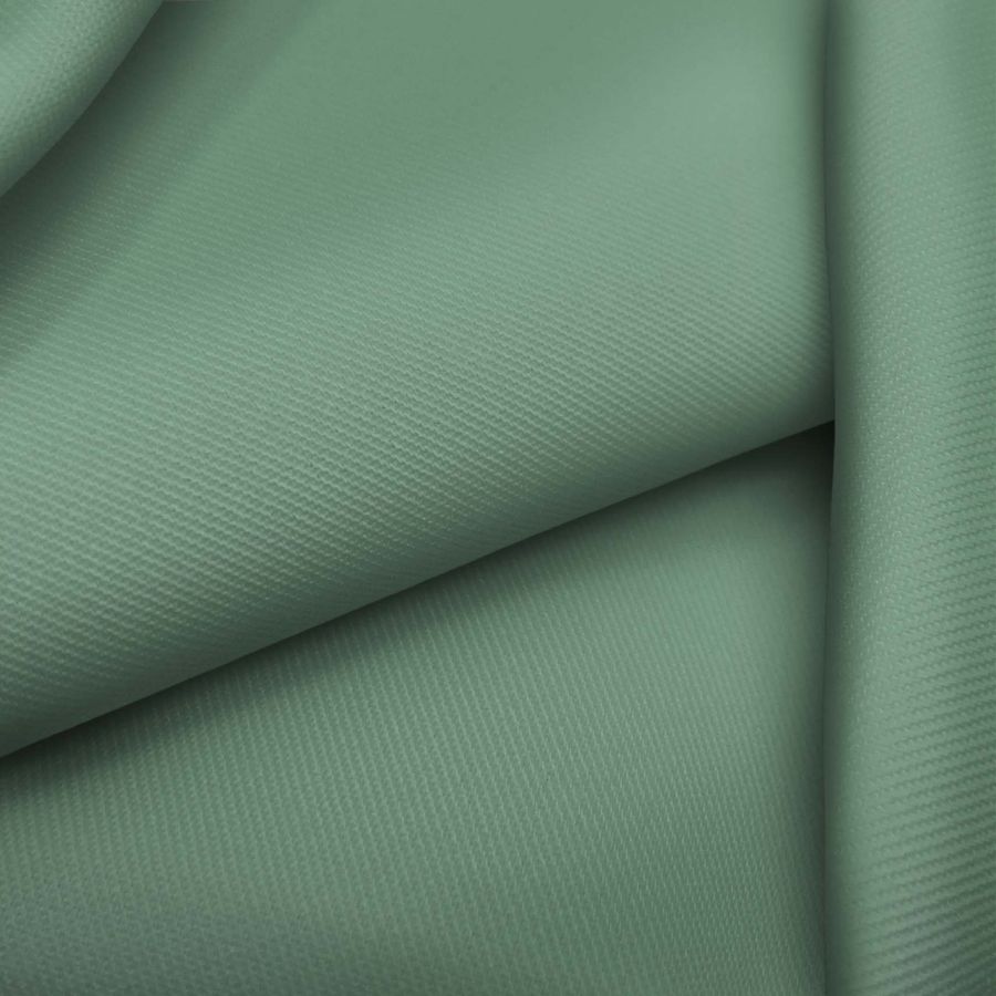 La tela base de esta prenda es la Sarga - Prada, compuesta por un 96% de poliéster y un 4% de elastano, lo que le confiere una gran elasticidad y comodidad en su uso. El color liso impreso es una tonalidad verde mar opaco, cuyo contenido de tinta Cyan es del 60%, de Magenta un 27%, de Yellow un 55% y de Black un 10%, con un CMYK de 60 27 55 10. Este color combina a la perfección con tonalidades azules y grises, así como con otros verdes más claros o más oscuros.