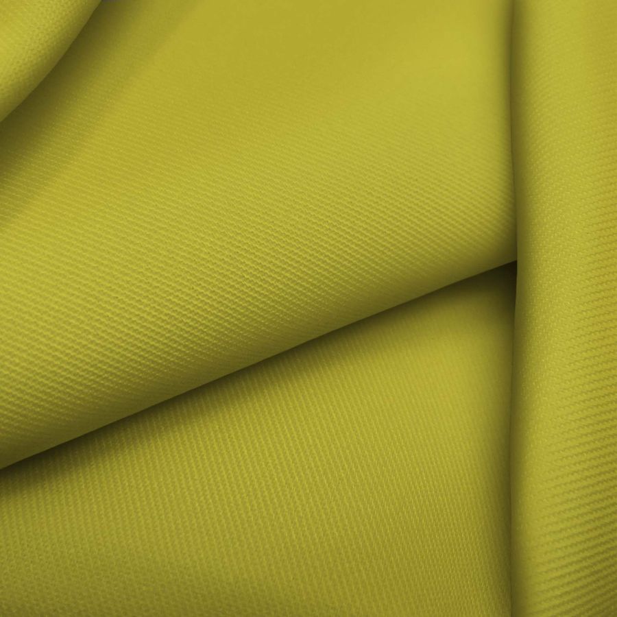 La tela base de este tejido es la Sarga-Prada, compuesta por un 96% de poliéster y un 4% de elastano, con un gramaje de 220 gr/m2 y un ancho de 150 cm. El color liso impreso es una combinación de verde y latón, con un CMYK de 31 21 90 5. Este color evoca la naturaleza y aporta un toque de elegancia dorada. Combina perfectamente con tonos neutros como el blanco, el beige o el gris, así como con algunos tonos tierra y azules suaves.