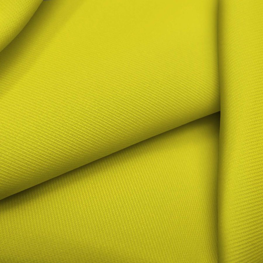 La tela base, Sarga-Prada, es una sarga compuesta de 96% poliéster y 4% elastano con un gramaje de 220 gr/m2. El color liso impreso es un vibrante Amarillo canario con un contenido de tinta Cyan de 14, tinta Magenta de 4, tinta Yellow de 90 y tinta Black de 0, dando lugar a un CMYK de 14 4 90 0. Este color primario es altamente simbólico, representando el sol, la energía, la alegría y la vitalidad, ideal para proyectos de moda atrevidos y modernos. El Amarillo canario combina bien con tonos azules, verdes y grises, añadiendo un toque de frescura a cualquier diseño.