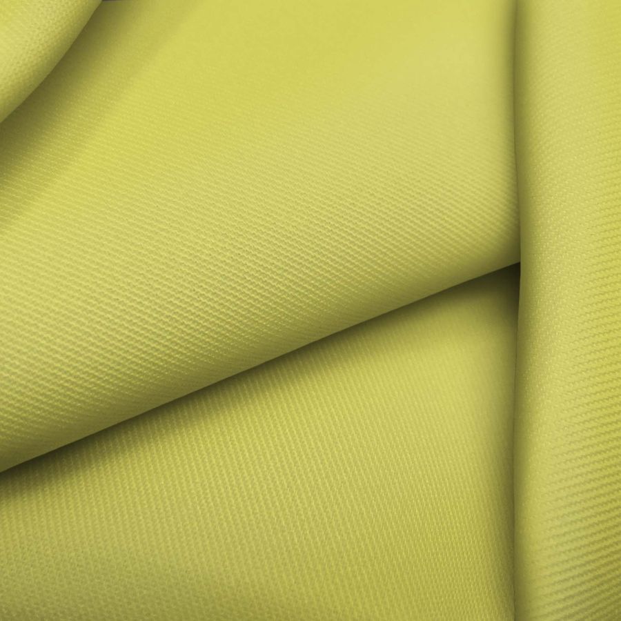 La tela base de esta prenda es una sarga Prada compuesta por un 96% de poliéster y un 4% de elastano. El color liso impreso es un amarillo plátano, con un CMYK de 16 3 73 0. Este color se caracteriza por su luminosidad y vitalidad, transmitiendo energía y optimismo. Además, se combina muy bien con otros colores cálidos como el naranja, rojo o rosa, y con los azules y verdes claros. Es importante destacar que la tela está impresa a una sola cara por impresión digital textil.