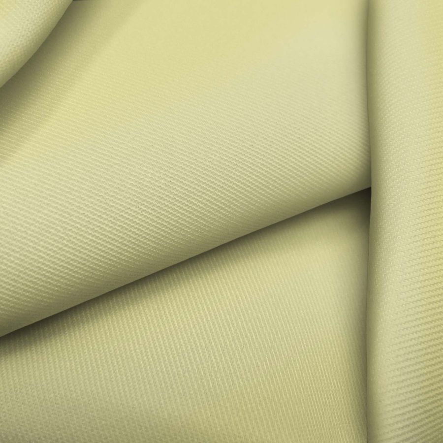 La tela base es una sarga de poliéster y elastano con un gramaje de 220 gr/m2 y un ancho de 150 cm. Su color liso impreso en amarillo maíz tiene un CMYK de 10 2 49 0. Este color simboliza la creatividad, la felicidad y el optimismo, combinando perfectamente con tonos neutros, marrones y grises.