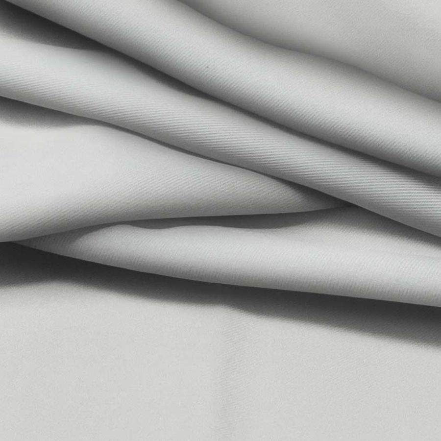 La tela base es una sarga de poliéster y elastano, de 220 gr/m2, con un ancho de 150 cm y cuidados específicos de lavado y planchado. Su color liso impreso es un elegante nube gris, que se obtiene mediante una combinación de tintas Cyan, Magenta, Yellow y Black en proporciones 20-12-17-0, lo que garantiza su calidad y durabilidad en el tejido. El color nube gris es simbólico de la estabilidad y sencillez, con una connotación sobria y elegante. Resulta fácilmente combinable con una amplia gama de colores, especialmente con tonos oscuros como el negro, azul marino y marrón.
