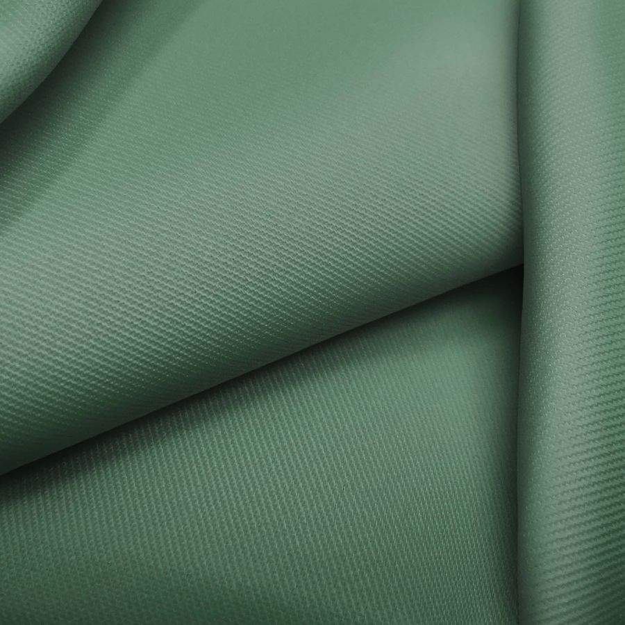 La tela base es la Sarga - Prada, compuesta en un 96% de poliéster y un 4% de elastano, tiene un gramaje de 220 gr/m2 y un ancho de 150 cm. El color liso impreso es un tono de verde avellana con una combinación de tintas Cyan de 67, Magenta de 35, Yellow de 63 y Black de 23, lo que resulta en un valor CMYK de 67 35 63 23. Este color evoca la naturaleza y el equilibrio, combina bien con tonos tierra, grises y azules, proporcionando un equilibrio armonioso en la paleta de colores.