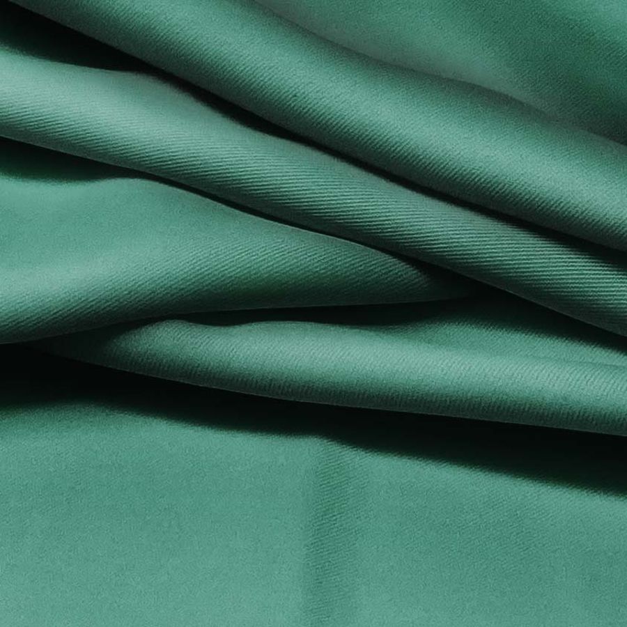 La tela base de Sarga - Prada es una tela suave al tacto y delgada, compuesta por un 96% de poliéster y un 4% de elastano, con un gramaje de 220 gr/m2 y una anchura de 150 cm. En cuanto al color liso impreso, se trata de un tono verde mar profundo, con un CMYK de 80 37 65 31. Este color se combina especialmente bien con tonos marrones, beige y blanco, lo que lo convierte en una elección ideal para prendas de moda de verano.