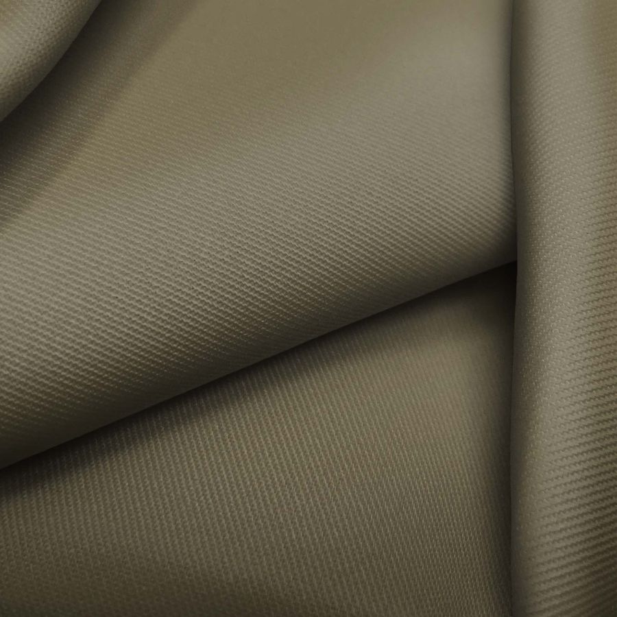 La tela base en cuestión es la Sarga-Prada, compuesta por un 96% de poliéster y un 4% de elastano, con un gramaje de 220 gr/m2 y un ancho de 150 cm. El color liso impreso es marrón-moca, con un CMYK de 53 46 65 42, lo que lo hace un tono cálido, cercano al café. Este color secundario combina muy bien con tonos tierra, neutros y pasteles, dando una imagen elegante y sofisticada. La tela está impresa con el color liso a una sola cara mediante impresión digital textil, lo que le confiere una mayor definición y fidelidad de color.