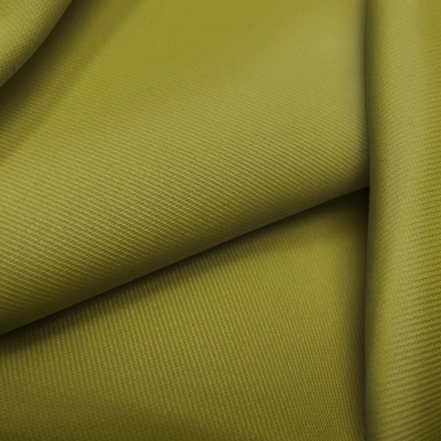 La tela base de este tejido es la Sarga - Prada, compuesta por un 96% de poliéster y un 4% de elastano, con un gramaje de 220 gr/m2 y un ancho de 150 cm. El color liso impreso es verde olivo, con una tinta cyan de 48, una tinta magenta de 37, una tinta yellow de 100 y una tinta black de 25, cuyo CMYK es de 48 37 100 25. El color verde olivo es un tono de verde intenso y oscuro que simboliza la naturaleza, la estabilidad y la seguridad. Combina bien con colores neutros como el beige o el gris, y también con tonos cálidos como el naranja o el amarillo.
