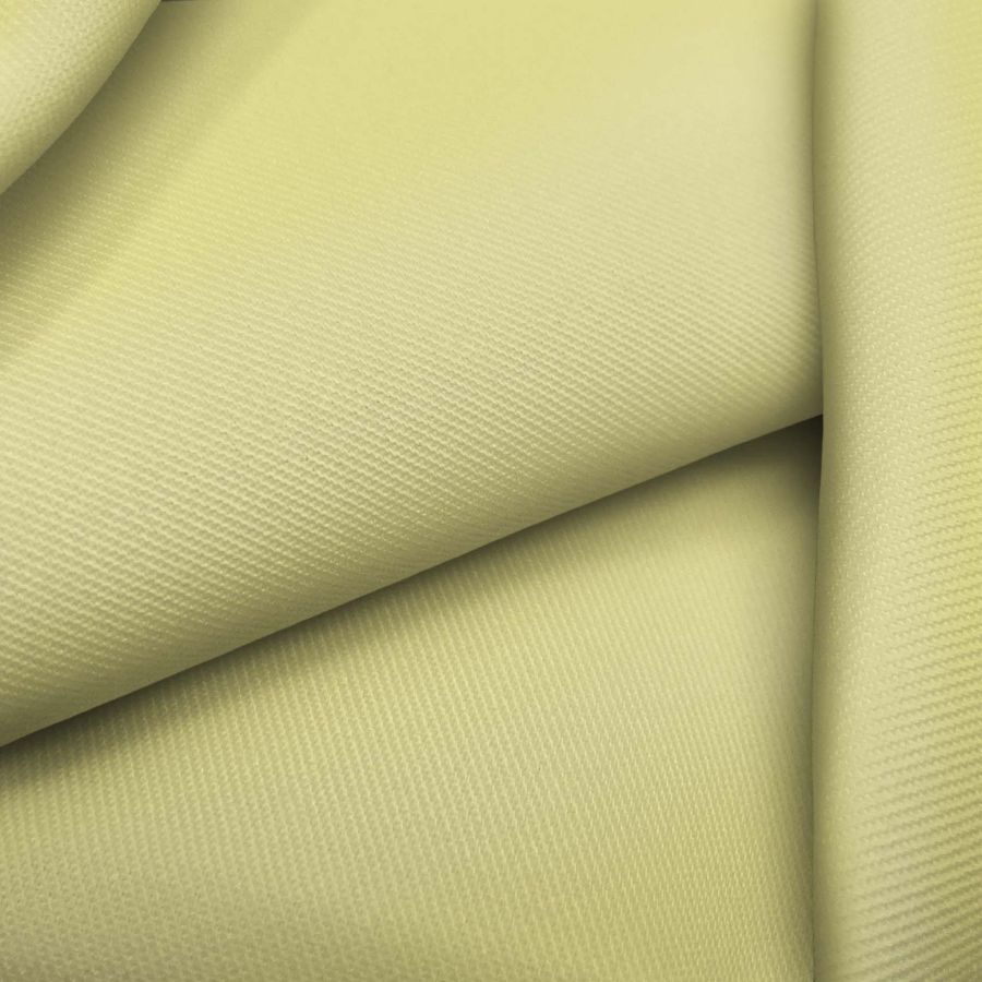 La tela base de este tejido es una Sarga-Prada compuesta por un 96% de poliéster y un 4% de elastano, con un gramaje de 220 gr/m2 y un ancho de 150cm. La impresión de color liso Amarillo/Amarillo Maíz se realizó mediante la tecnología de sublimación, donde la tinta Cyan se encuentra en un 8%, la Magenta en un 1%, la Yellow en un 53% y el Black en un 0%. Este color secundario es un tono alegre y vibrante, representando optimismo y energía creativa. Combina perfectamente con otros colores cálidos como el naranja y el rojo y puede ser complementado con grises y blancos para un aspecto más sofisticado.