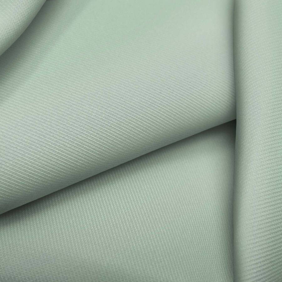 La tela base es la sarga Prada, compuesta por un 96% de poliéster y un 4% de elastano, con un gramaje de 220 gr/m2 y un ancho de 150 cm. Su color liso es Verde DarkSeaGreen, con un CMYK de 34 6 33 0. Este color refleja suavidad y elegancia, evocando la naturaleza y la tranquilidad que transmite el verde. Combina en particular con tonos neutros como beige o gris, así como con tonos tierra o turquesa. La tela está impresa con este color liso a una sola cara por impresión digital textil, no siendo un tejido tintado sino impreso por una sola cara.