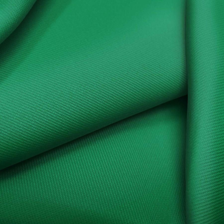 La tela base del tejido es una sarga de poliéster y elastano de 220 gr/m2, con un ancho de 150cm y sin blanquear. El color liso impreso corresponde a un verde bosque oscuro, cuyo código de color CMYK es 87 27 84 14. Este color tiene una atmósfera simbólica de lo natural, de la vida y regeneración, con un valor técnico de saturación y contraste medios. Además, este tono combina especialmente bien con otros colores de la gama terrosa y los tonos crema. Cabe destacar que la tela está impresa con color liso a una sola cara por impresión digital textil.