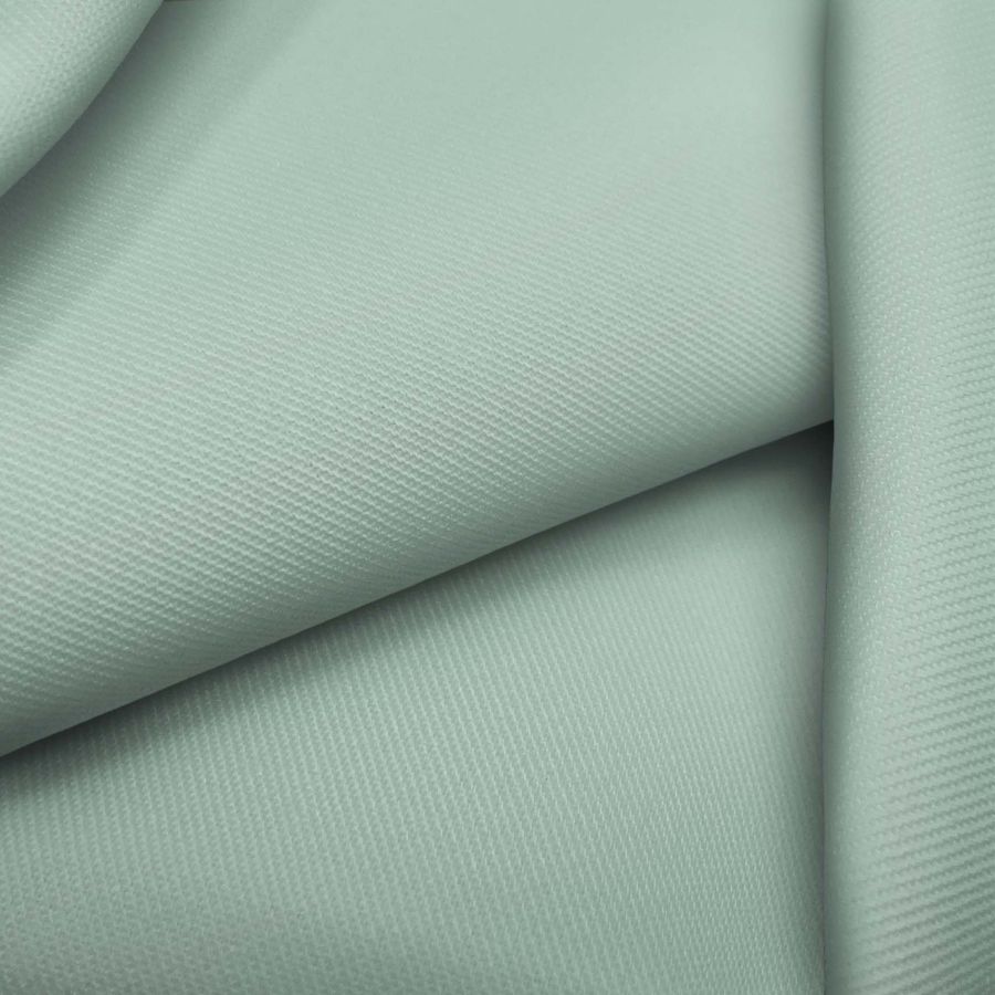 La tela base es una sarga de poliéster y elastano de 220 gr/m2 de gramaje y 150 cm de ancho en color liso impreso. El CMYK del color indica un verde azul con un alto contenido de cian y amarillo y un bajo contenido de magenta y negro. Este color evoca la calma del mar y la naturaleza, por lo que es perfecto para ropa de verano. Combina muy bien con tonos tierra y neutros. La tela está impresa a una sola cara por impresión digital textil.