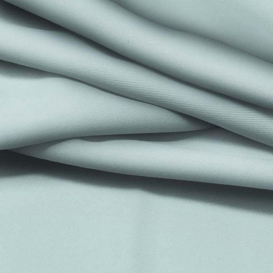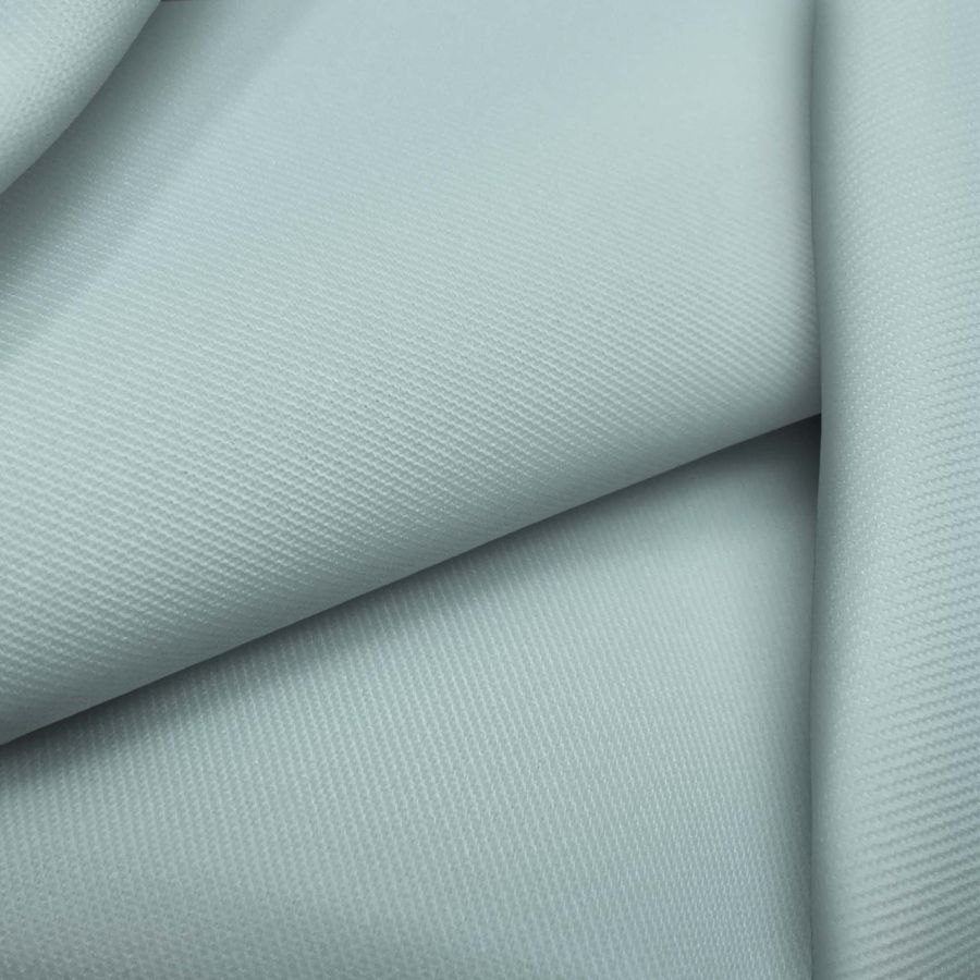 La tela base es una sarga de poliéster-elastano con un gramaje de 220 gr/m2 y un ancho de 150 cm. El color liso impreso es PowderBlue, compuesto por tinta cyan (33), magenta (5), yellow (17) y black (0). Tiene un aspecto suave y delgado, y combina bien con tonos neutros y pasteles. La tela está impresa a una sola cara por impresión digital textil.