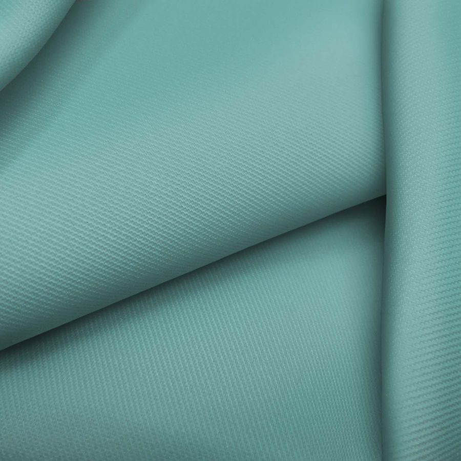 La tela base de este tejido es una sarga de poliéster y elastano de 220 gr/m2 y 150 cm de ancho, llamada Sarga - Prada. Su color liso impreso es verde menta, con un CMYK de 59 13 35 1. Este color se caracteriza por su frescura y vivacidad, evocando el mundo de la naturaleza y la serenidad. Este color combina muy bien con tonos neutros como el blanco o el negro y otros tonos pastel para crear un ambiente relajante y sofisticado.