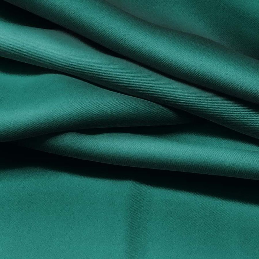 La tela base de esta prenda es la Sarga - Prada, compuesta por un 96% de poliéster y un 4% de elastano, con un gramaje de 220 gr/m2 y un ancho de 150 cm. El color liso impreso es un verde teal profundo, con un CMYK de 91 43 65 50. Este color transmite serenidad y frescura, y combina a la perfección con tonos azules o tierra.