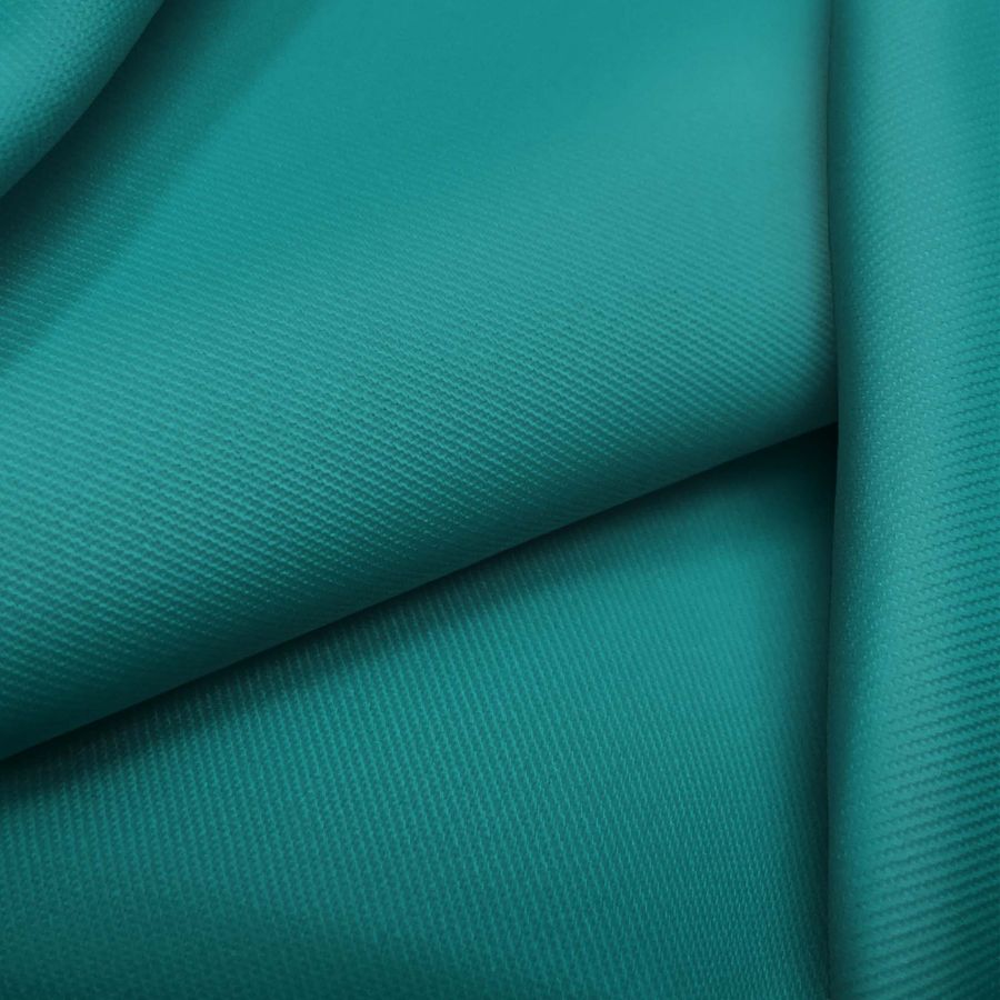 La tela base, la Sarga - Prada, es una sarga de poliéster y elastano de 220gr/m2 y un ancho de 150cm. El color liso impreso es Verde azulado medio, con un CMYK de 85 30 50 17. Este color representa la frescura y el equilibrio, y se combina bien con tonos neutros como el gris y el beige, así como con tonos cálidos como el amarillo y el naranja.
