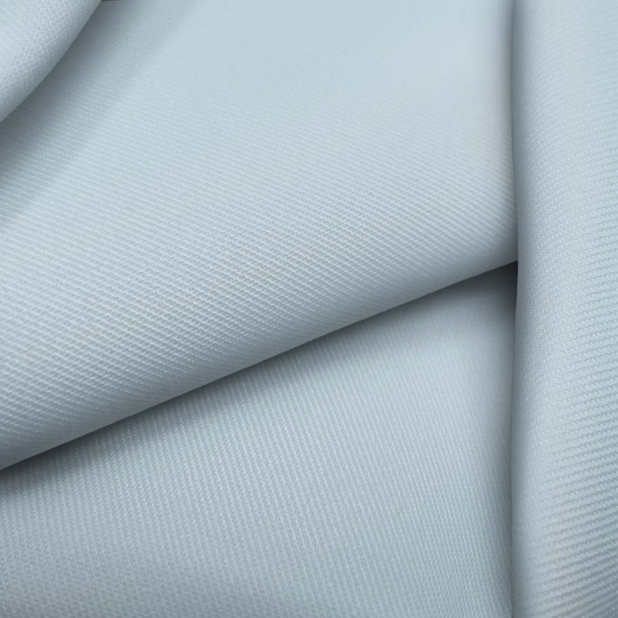 La tela base de este tejido es la Sarga - Prada, compuesta por 96% de poliéster y 4% de elastano, con un gramaje de 220 gr/m2 y una anchura de 150 cm. El color liso impreso es de tonalidad azul claro, siendo su CMYK 25 4 6 0. Es un color suave que aporta un toque de delicadeza y frescura a cualquier prenda confeccionada. Se combina idealmente con colores grisáceos, verdes y rosados, lo que lo convierte en una elección perfecta para prendas de verano.