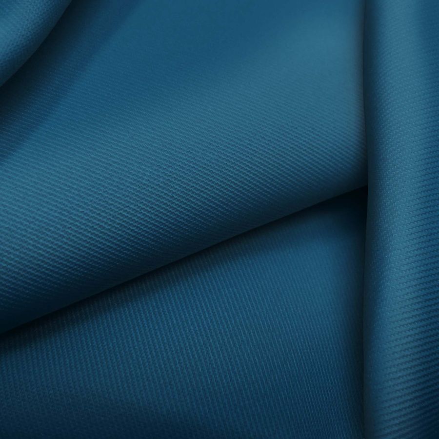 La tela base Sarga - Prada es una sarga de poliéster con un 4% de elastano para una mayor flexibilidad. El color del tejido es un profundo azul marino con un CMYK de 98 66 40 32, lo que significa que se compone principalmente de cian y magenta con una pequeña cantidad de amarillo y negro. Este color secundario simboliza la sabiduría, la confianza y la estabilidad, y combina bien con otros tonos azules, pero también con amarillos y blancos.