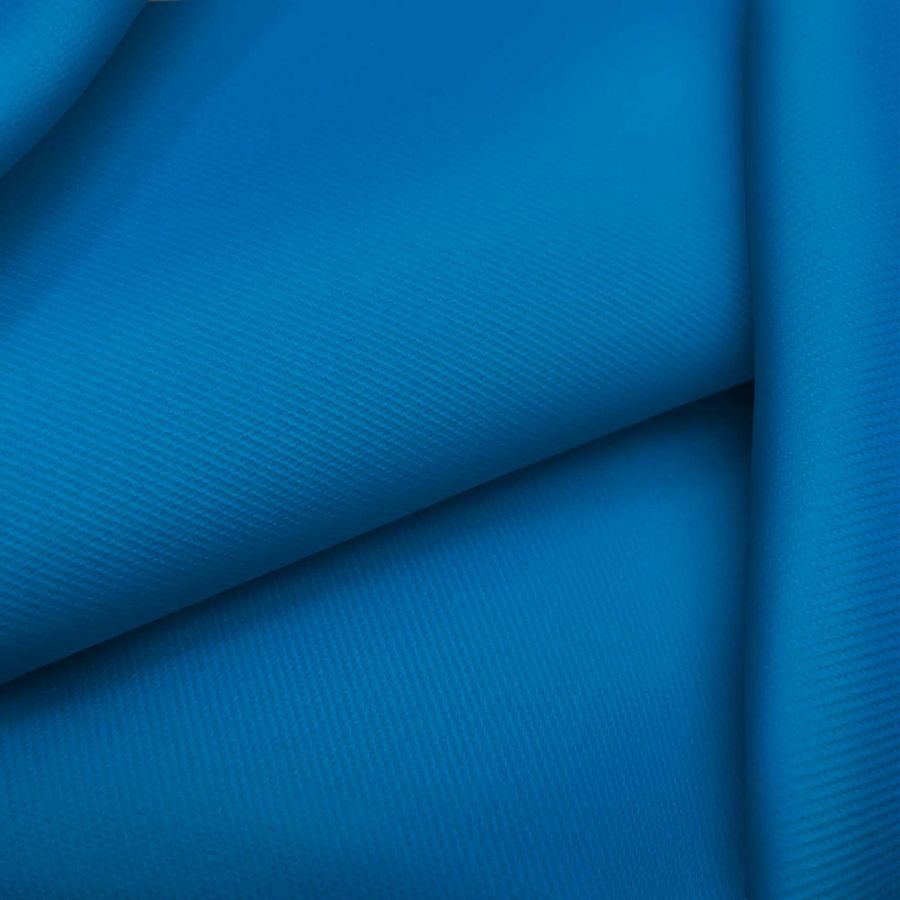 La tela base es una sarga llamada Prada, compuesta por un 96% de poliéster y un 4% de elastano, con un gramaje de 220 gr/m2 y un ancho de 150 cm. El color liso impreso es un azul intenso, de ojos azules, con un CMYK de 89 53 3 0, lo que indica una predominancia de tonalidades cianas y una menor presencia de magenta y amarillo. Este color se caracteriza por ser elegante y sofisticado, siendo ideal para la fabricación de prendas para ocasiones especiales como bodas y eventos formales. Combina muy bien con otros tonos oscuros como el negro y el gris, así como con tonos más claros como el blanco y el marfil.