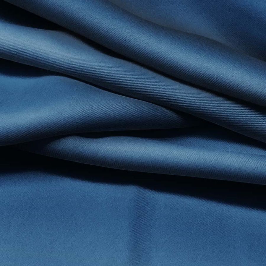 La tela base de este tejido es la Sarga - Prada, compuesta en un 96% de poliéster y un 4% de elastano, con un gramaje de 220 gr/m2 y un ancho de 150 cm. El color liso impreso es un profundo azul marino, con una combinación de tinta cyan del 100%, magenta del 77%, yellow del 40% y black del 32% (CMYK 100 77 40 32). Este color evoca serenidad y elegancia en cualquier prenda que se confeccione con él. Además, combina especialmente bien con tonos más claros, como el blanco o el gris claro.