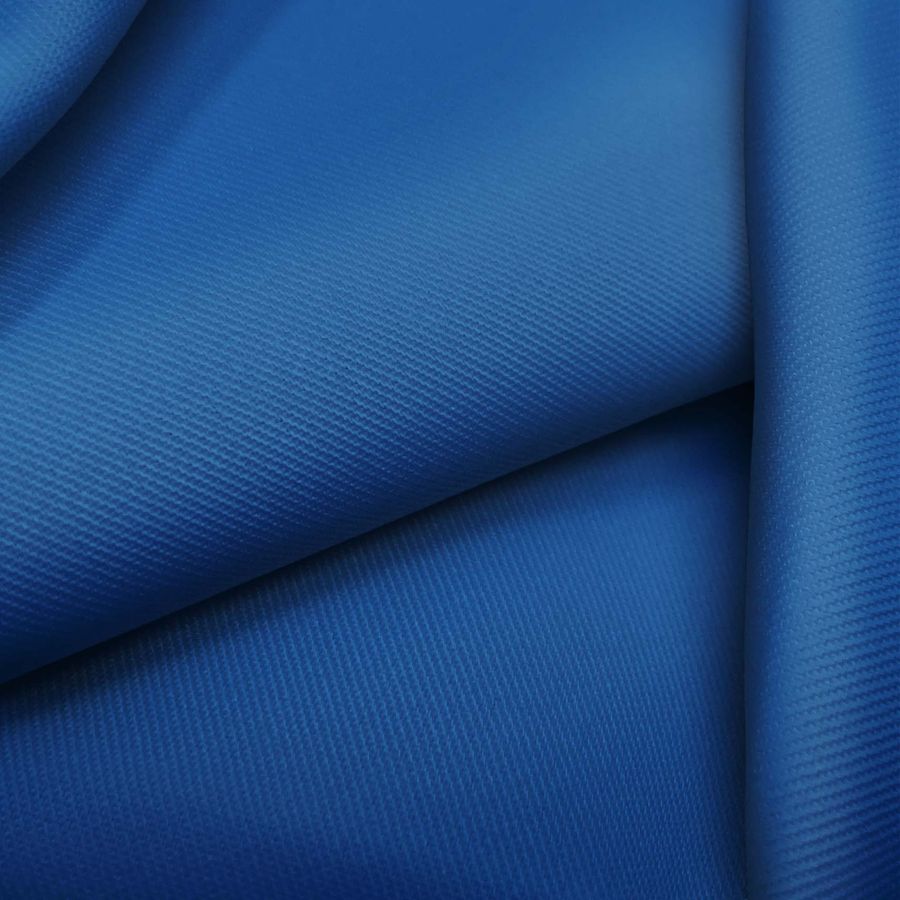 La tela base es la Sarga - Prada, compuesta por un 96% de poliéster y un 4% de elastano, con un gramaje de 220 gr/m2 y una anchura de 150 cm. El color liso impreso es un azul denim oscuro, con una tinta cyan del 100, magenta del 75, amarillo del 16 y black del 3, representando el CMYK 100 75 16 3. Este color secundario evoca la sensación de seriedad y elegancia, siendo perfecto para utilizar en prendas formales. Además, combina bien con colores como el blanco, marrón claro y naranja.