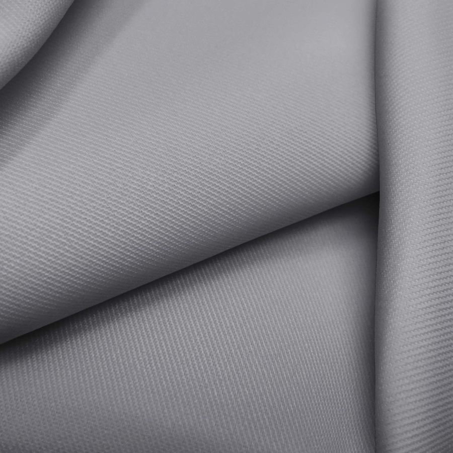 La tela base de este tejido es la Sarga - Prada, compuesta por un 96% de poliéster y un 4% de elastano, con un gramaje de 220 gr/m2 y un ancho de 150 cm. El color liso impreso es Gris, Plata sónica, con los siguientes atributos CMYK: 46 37 33 13. Este color es predominantemente gris, con un tono metálico plateado que le da un toque de sofisticación. Combina muy bien con los colores fríos como el azul y el verde, pero también puede combinarse con tonos cálidos como el rosa o el rojo.