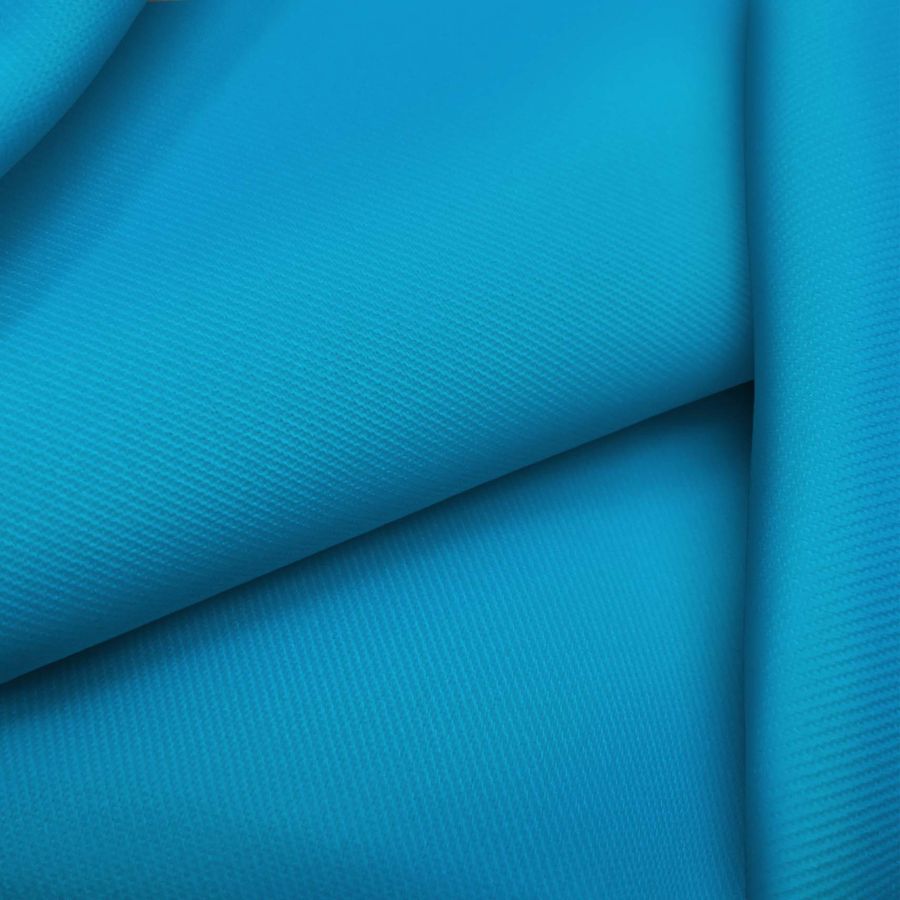 La tela base de este tejido es la Sarga-Prada, compuesta por un 96% de poliéster y un 4% de elastano con un gramaje de 220 gr/m2 y un ancho de 150 cm. El color liso impreso en este tejido es azul neón, representado por un CMYK de 76 23 1 0, lo que le otorga una presencia vibrante y llamativa. Combinado con colores primarios o tonos neutros, este color secundario se convierte en un factor clave para acaparar la atención en cualquier entorno. Este tejido poliéster impreso con la tecnología de sublimación digital textil presenta características suaves y delicadas, que se pueden apreciar en su textura y tacto suaves, y su delgadez. Cabe destacar que la tela base está impresa a una sola cara por impresión digital textil, por lo que es importante tener en cuenta que no es un tejido tintado y todo el color viene de la impresión.