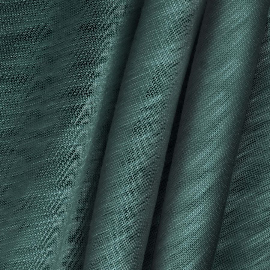 La tela base, Punto Camiseta Jaspeado - Dubái, es una tela de punto con una composición 100% poliéster, con un gramaje de 135 gr/m2 y un ancho de 160 cm. Su color liso impreso es un azul intenso con toques de teal profundo, cuyo contenido del CMYK es 74 45 54 42. Este color combina muy bien con tonos neutros como el blanco, el gris y el negro, así como con tonos más brillantes como el amarillo, el naranja y el rosa. Es importante destacar que el tejido está impreso a una sola cara por impresión digital textil, lo que significa que no es un tejido tintado sino impreso por una sola cara.