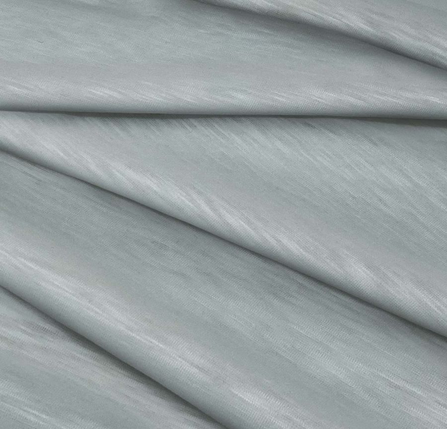 El color gris nublado es un tono neutro que evoca calma y serenidad, perfecto para prendas elegantes y sofisticadas. Este color puede ser combinado con tonos similares, como el gris claro o el negro, pero también puede ser contrastado con tonos más brillantes, como el rojo o el amarillo. La textura visual de la tela es translúcida y jaspeada, mientras que la textura al tacto es lisa y elástica. Es importante destacar que este tejido está impreso con el color liso a una sola cara por impresión digital textil.