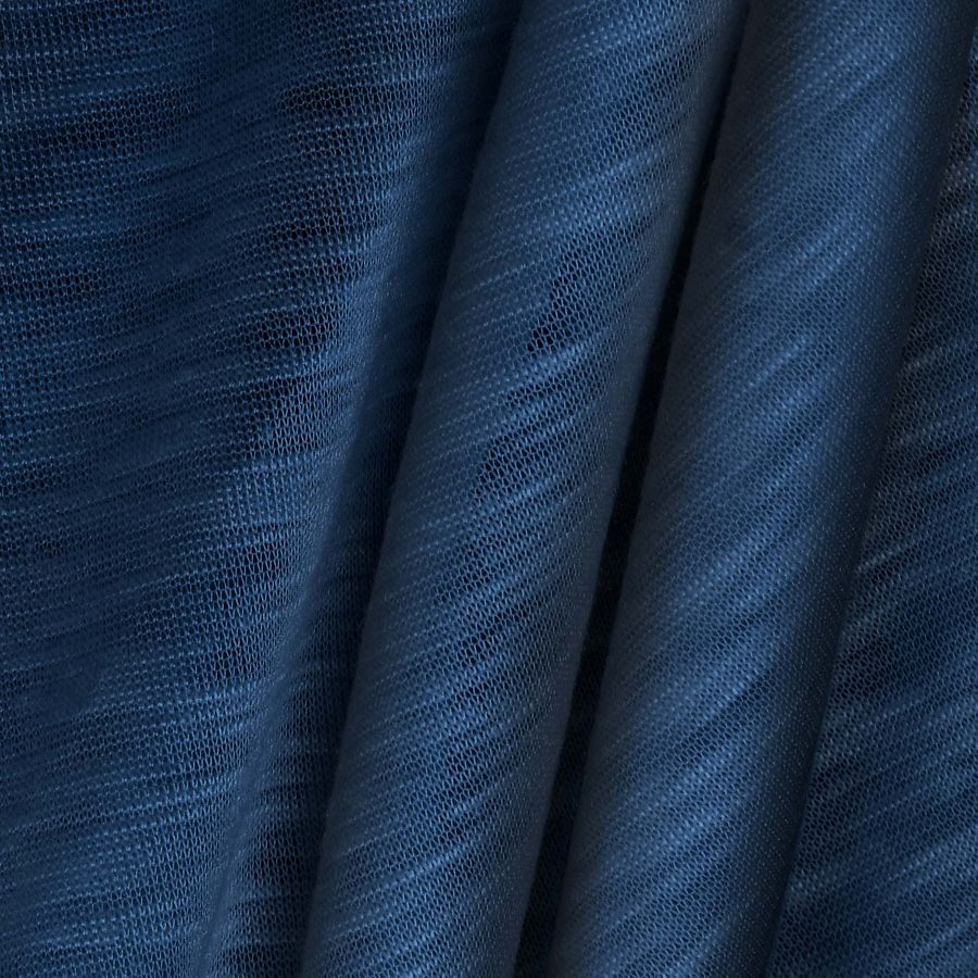 La tela base, Punto Camiseta Jaspeado - Dubái, de composición 100% poliéster, tiene un gramaje de 135 gr/m2 y ancho de 160 cm. El color liso impreso en esta tela es un Azul Pizarra Oscura con un contenido de tinta Cyan de 97, tinta Magenta de 76, tinta Yellow de 42 y tinta Black de 42, con un CMYK de 97 76 42 42.