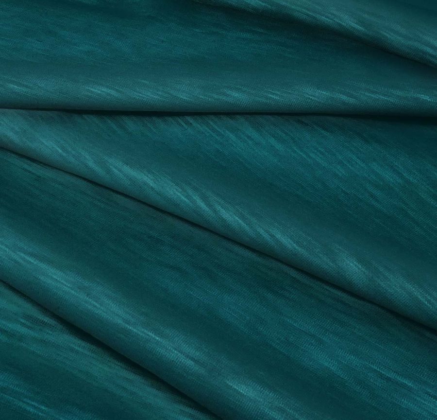La tela base de este tejido es un Punto Camiseta Jaspeado - Dubái, 100% poliéster con un gramaje de 135 gr/m2 y un ancho de 160 cm. El color liso impreso es un verde teal profundo, con una combinación de tintas CYMK de 93 (cyan), 50 (magenta), 52 (yellow) y 49 (black). Este color tiene una simbología de equilibrio, frescura y elegancia, y combina especialmente bien con colores como el blanco, el gris y el negro.