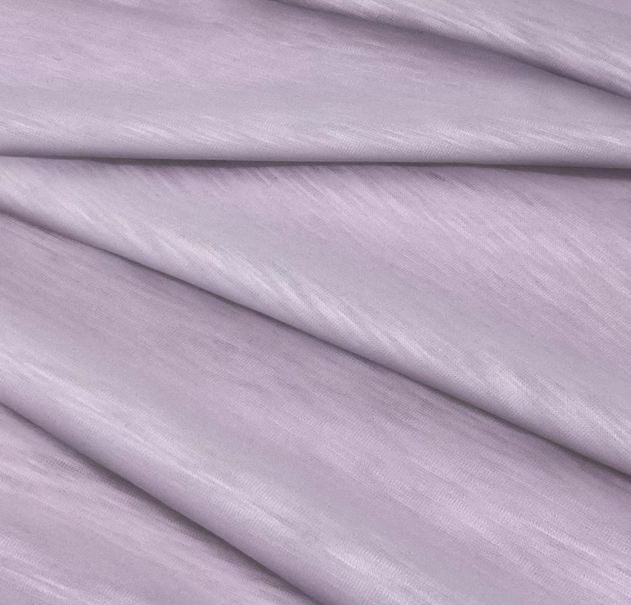 La tela base es Punto Camiseta Jaspeado - Dubái, con un contenido del 100% en poliéster y un gramaje ligero de 135 gr/m2, con un ancho de 160 cm. En cuanto al color liso impreso, se trata de un tono morado con matices de malva, indicado por sus valores CMYK: 24 35 4 0, lo que indica una baja saturación. Este color evoca la creatividad y la introspección, lo que lo hace ideal para prendas de moda o decoración. El morado combina bien con colores neutros como grises, blancos y negros, y con otros colores vibrantes como el amarillo y el verde.