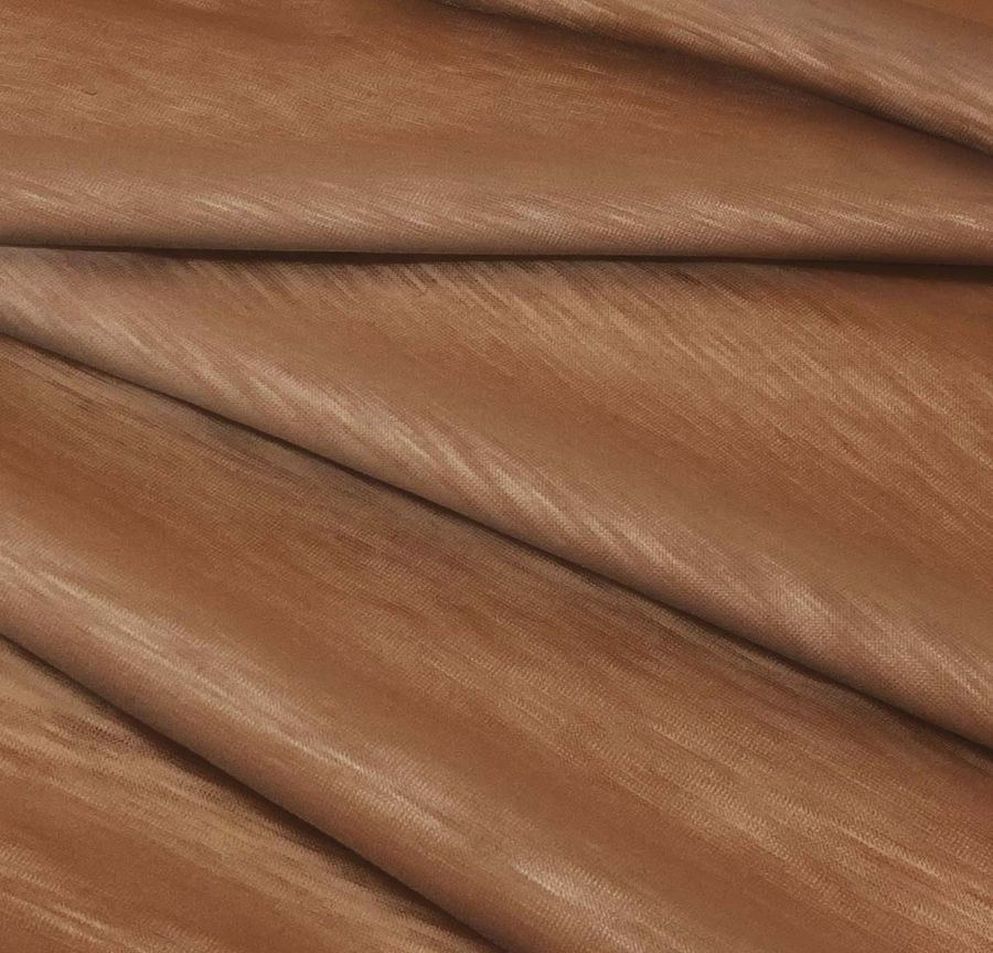La tela base de esta prenda es el Punto Camiseta Jaspeado - Dubái, compuesta por un 100% de poliéster, con un gramaje de 135 gr/m2 y un ancho de 160 cm. El color liso impreso en esta tela es el Marron Oso Café, con un contenido de tinta de Cyan 33, Magenta 58, Yellow 68 y Black 35. Este color se caracteriza por ser un tono cálido y terroso, que transmite la sensación de calidez y naturalidad. Este color secundario combina muy bien con tonos naturales y tierra, como los verdes oscuros o los tonos camel.