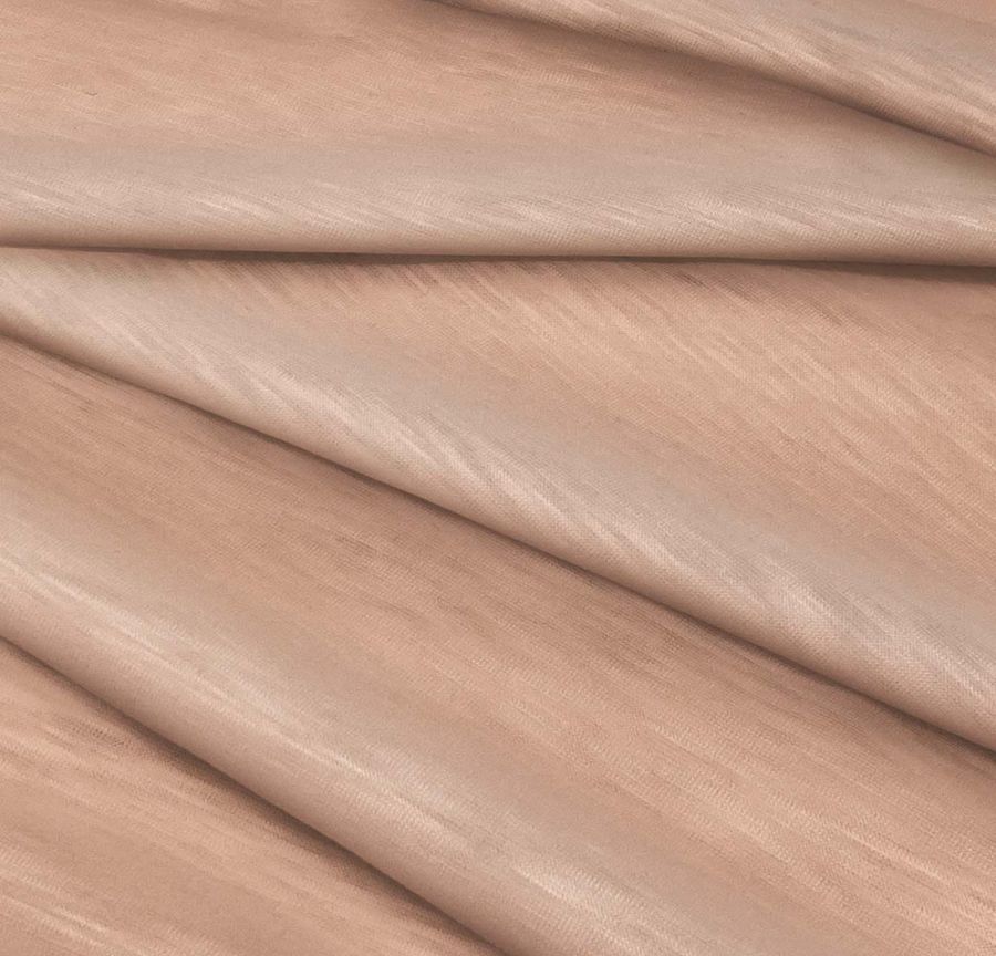 La tela base es el Punto Camiseta Jaspeado - Dubái, un tejido de punto de poliéster con un gramaje de 135 gr/m2 y un ancho de 160 cm. Su color liso impreso es una combinación de naranja y cobre claro, con un CMYK de 11 43 44 2. Este color secundario aporta un aspecto cálido y energético, con una connotación positiva y atrevida. Combina especialmente bien con tonos neutros como el gris o el negro, y con tonos terrosos como el marrón o el beige.