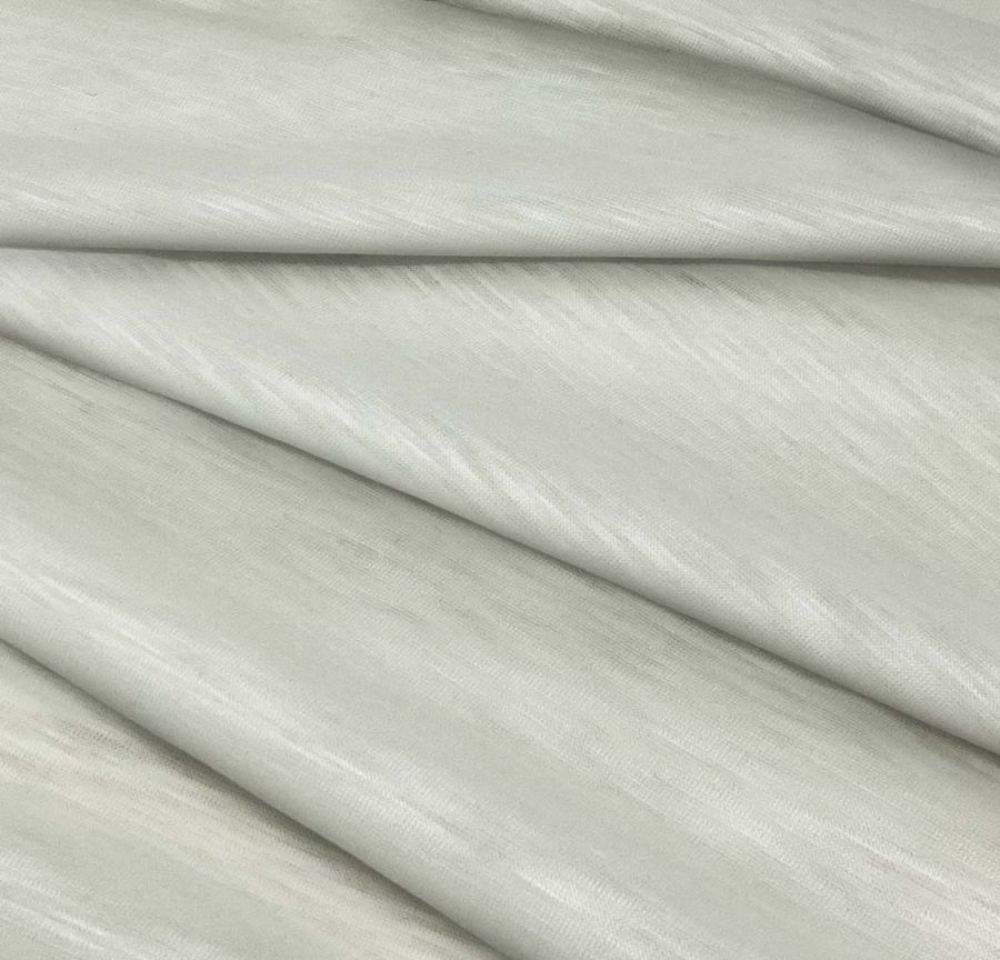 La tela base de este tejido es el Punto Camiseta Jaspeado - Dubái, una tela de punto lisa y elástica compuesta al 100% por poliéster, con un gramaje de 135 gr/m2 y un ancho de 160 cm. Su color liso impreso es Crudo-Ceniza Blanca, que se obtiene con una combinación de cian, magenta y amarillo en un CMYK de 16 9 23 0. Este color presenta una tonalidad grisácea y discreta, que combina especialmente bien con tonos fríos como el azul, el verde o el morado.