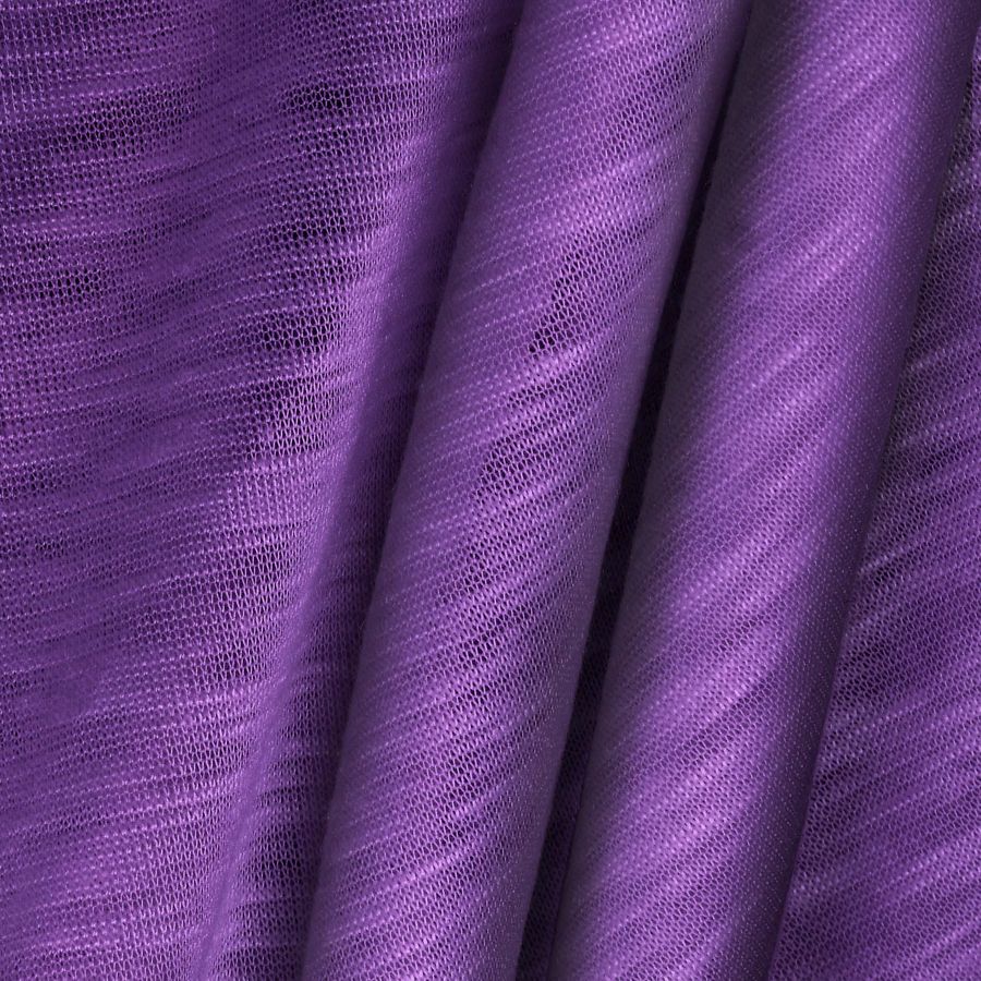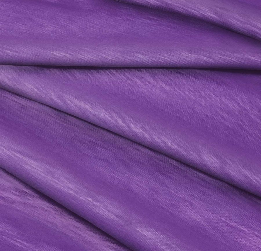 La tela base, Punto Camiseta Jaspeado - Dubái, es un tejido de punto con una composición de 100% poliéster, con un gramaje de 135 gr/m2 y un ancho de 160 cm. El color liso impreso es de color morado irisado, con un CMYK de 66, 80, 6, 0, lo que le da una apariencia vibrante y atractiva. El color secundario es un púrpura intenso con reflejos irisados que le dan profundidad y movimiento a la tela. Combina perfectamente con otros tonos morados, blancos y grises, lo que lo hace ideal para prendas de vestir tanto para mujer como para hombre.