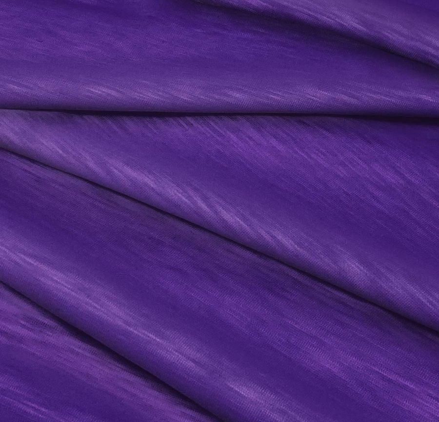 La tela base de la Punto Camiseta Jaspeado - Dubái es de poliéster con un gramaje de 135 gr/m2 y un ancho de 160 cm. Su color liso impreso es una mezcla de morado e índigo con un CMYK de 87 100 12 3. Este color secundario se caracteriza por su profundidad y misterio, resultando en un color muy atractivo e impactante. El azul índigo es un color que simboliza la sabiduría y la intuición, mientras que el morado refleja la creatividad y la originalidad. Este color secundario combina especialmente bien con tonos grises, blancos y negros, creando un efecto de contraste muy elegante.