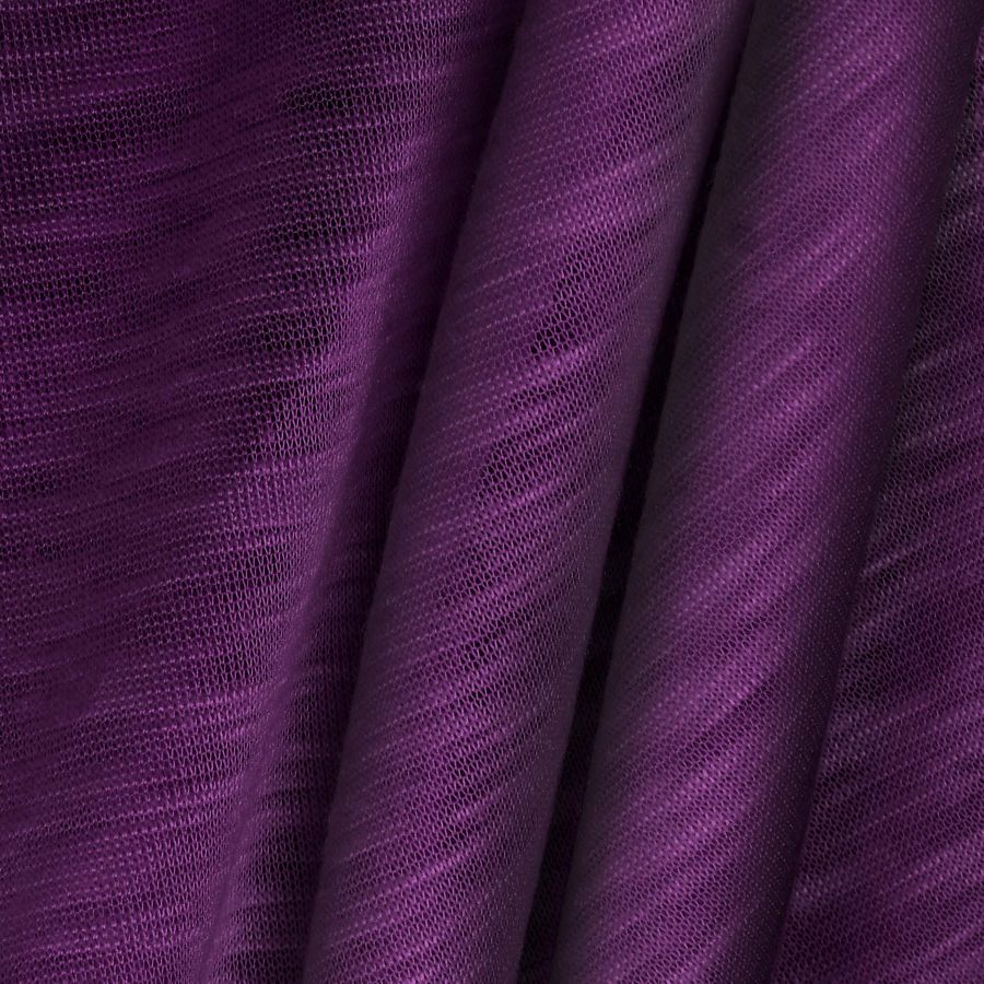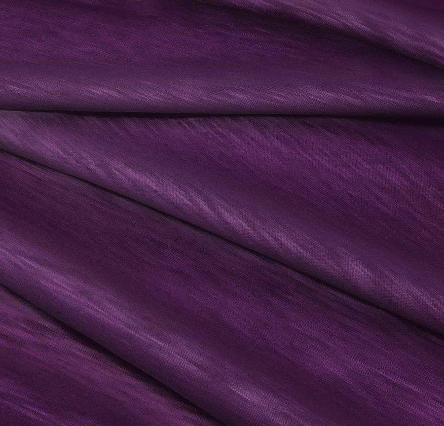 La tela base de este producto es el Punto Camiseta Jaspeado - Dubái, con una composición de 100% poliéster y un gramaje de 135 gr/m2. El color liso impreso en este tejido es de tonalidades moradas y oscilando entre un 77% y un 100% en la tinta cian y magenta, respectivamente, un 35% en tinta amarilla y un 44% en tinta negra, formando así un CMYK de 77 100 35 44. La tela base presenta una textura visual translucida y jaspeada, con un tacto liso y elástico.