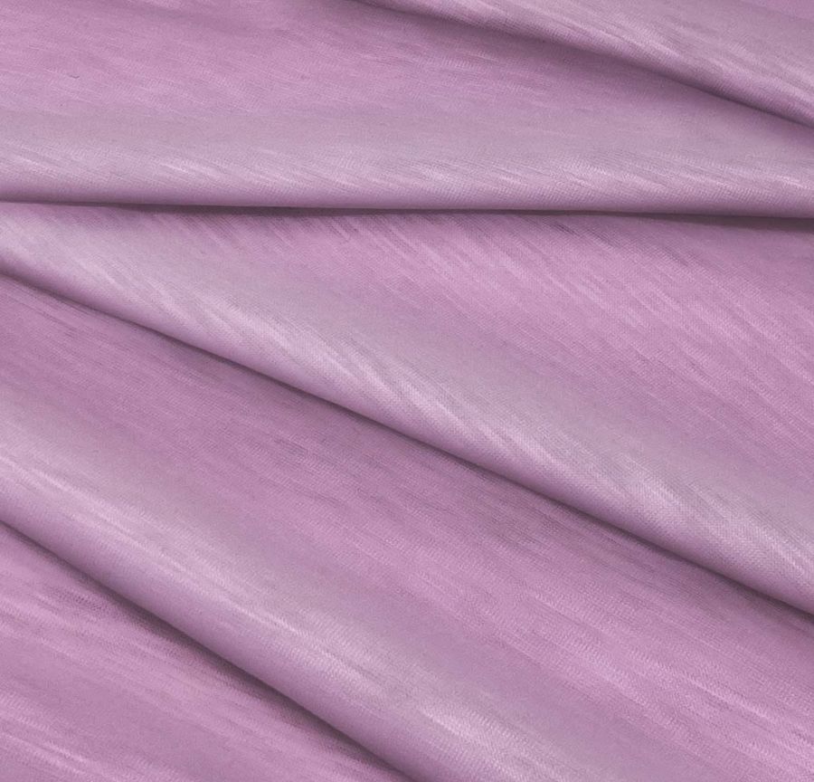 El tejido está impreso con el color liso a una sola cara por impresión digital textil, lo que implica que la impresión penetra la fibra del tejido en una sola pasada. La textura del tejido se caracteriza por tener un tacto y una visual lisos y translúcidos, aunque también se observa una textura visual jaspeada. Asimismo, su elasticidad la hace perfecta para prendas de punto, camisetas y moda para hombre y mujer.