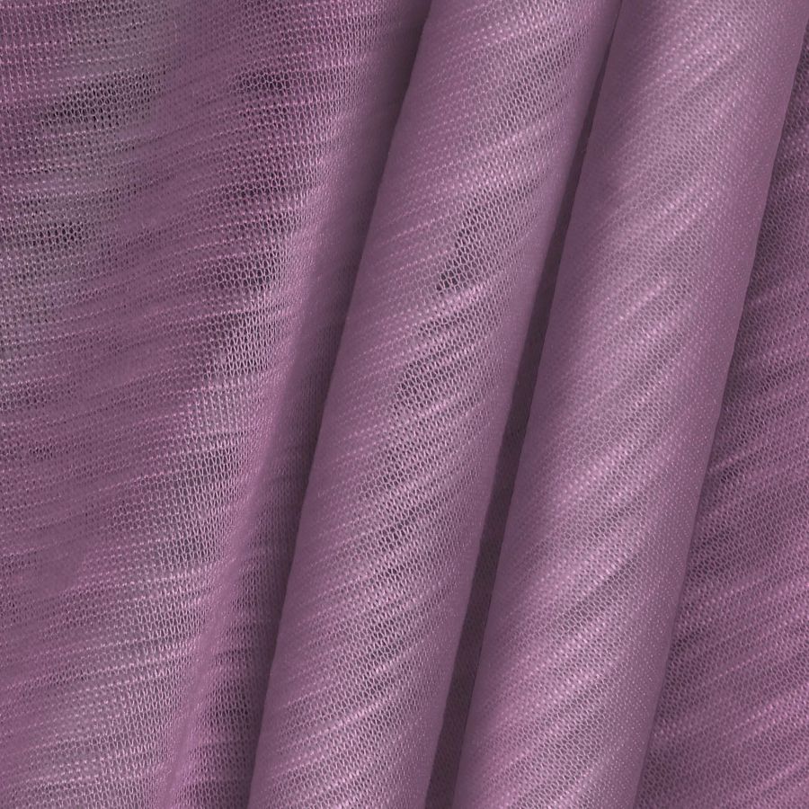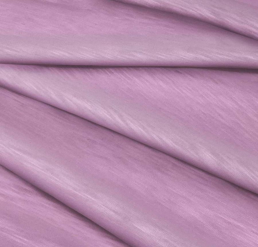 La tela base, Punto Camiseta Jaspeado - Dubái, está compuesta en un 100% de poliéster, con un gramaje de 135 gr/m2 y un ancho de 160 cm. Su color liso impreso es un tono morado ciruela, cuyo CMYK es 24 53 5 0, y está impreso a una sola cara mediante impresión digital textil. Esta tela tiene una textura lisa y visual translúcida con un toque jaspeado y elástico, lo que la hace perfecta para prendas de punto, especialmente para camisetas tanto de mujer como de hombre en cualquier época del año.