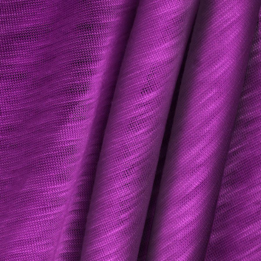 La tela base de este tejido es Punto Camiseta Jaspeado - Dubái, compuesta por 100% poliéster, con gramaje de 135gr/m2 y ancho de 160cm. El color liso impreso es de tonalidad Morado-Púrpura, el cual se obtiene mediante impresión digital textil con una combinación de 58% de tinta Cyan, 95% de tinta Magenta, 2% de tinta Yellow y 0% de tinta Black, lo que da un valor CMYK de 58 95 2 0.