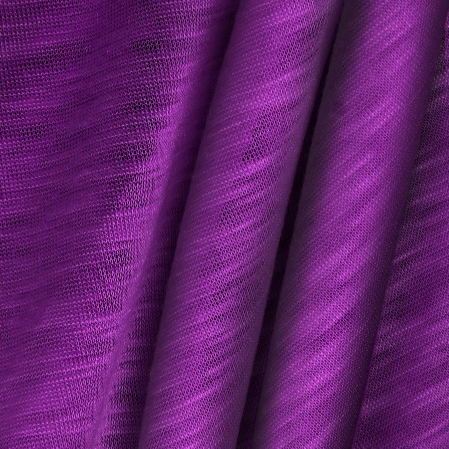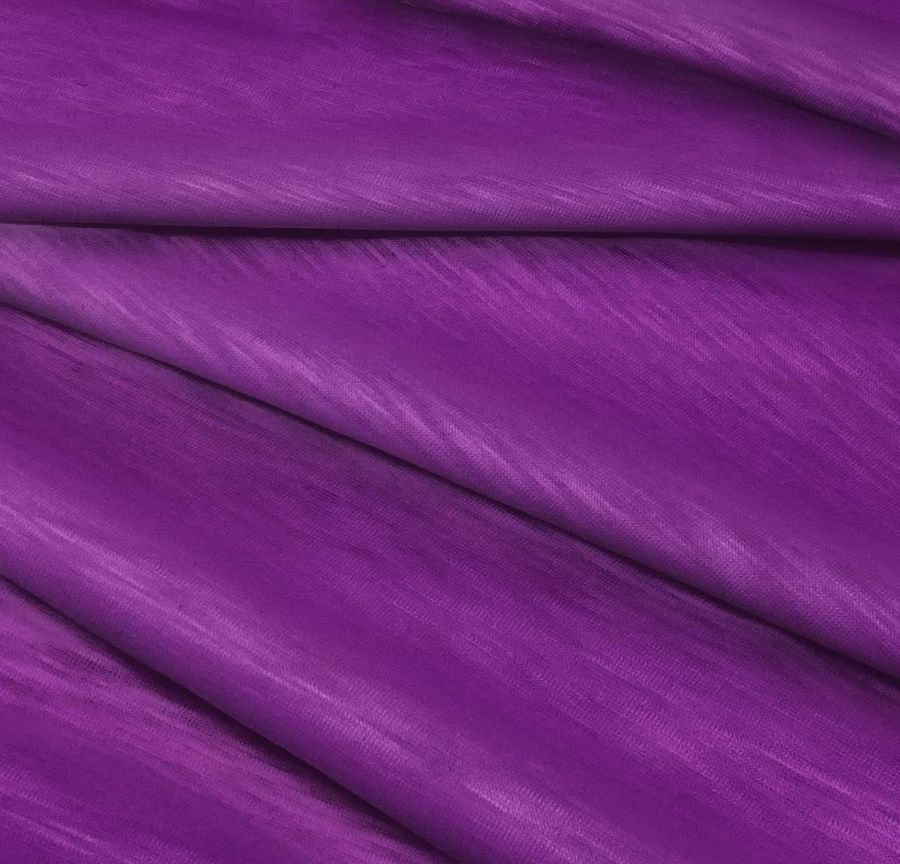 La tela base es la Punto Camiseta Jaspeado - Dubái, una tela de punto elaborada con un 100% de poliéster y un gramaje de 135 gr/m2. Su ancho es de 160 cm y está diseñada para prendas de moda, especialmente camisetas tanto para hombre como para mujer. El color liso impreso sobre esta tela base es Morado Mermelada Púrpura, que se obtiene mediante la combinación de las tintas cyan, magenta, yellow y black dentro de un CMYK: 69 100 10 3. Este tono intenso y vibrante es ideal para atraer todas las miradas.