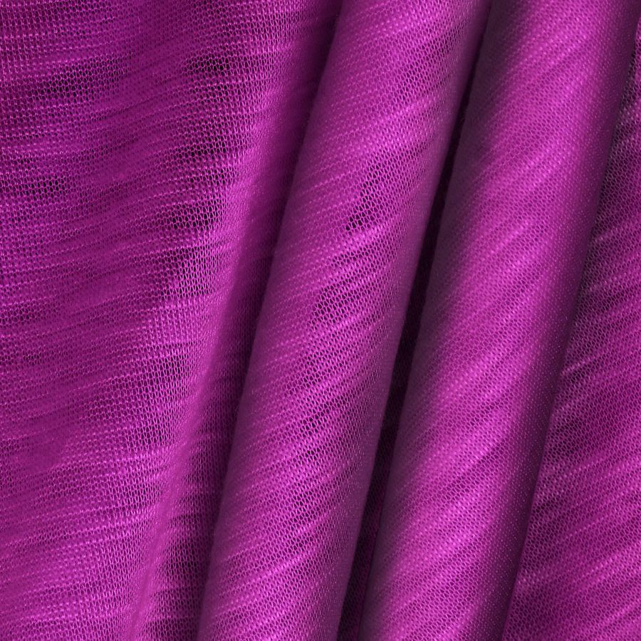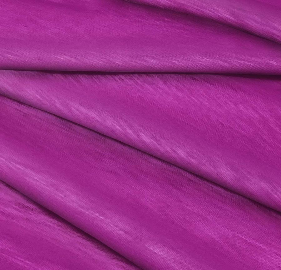 La tela base de esta prenda es el Punto Camiseta Jaspeado - Dubái, compuesta al 100% de poliéster y con un gramaje de 135 gr/m2. El color liso se presenta en tonalidades de morado y púrpura, con un CMYK de 46 95 1 0, lo que indica una predominancia de tinta magenta. Un color vibrante y sofisticado que se combina a la perfección con tonos grises o negros para un look atrevido, o con tonos beige o beige claro para un estilo más elegante.