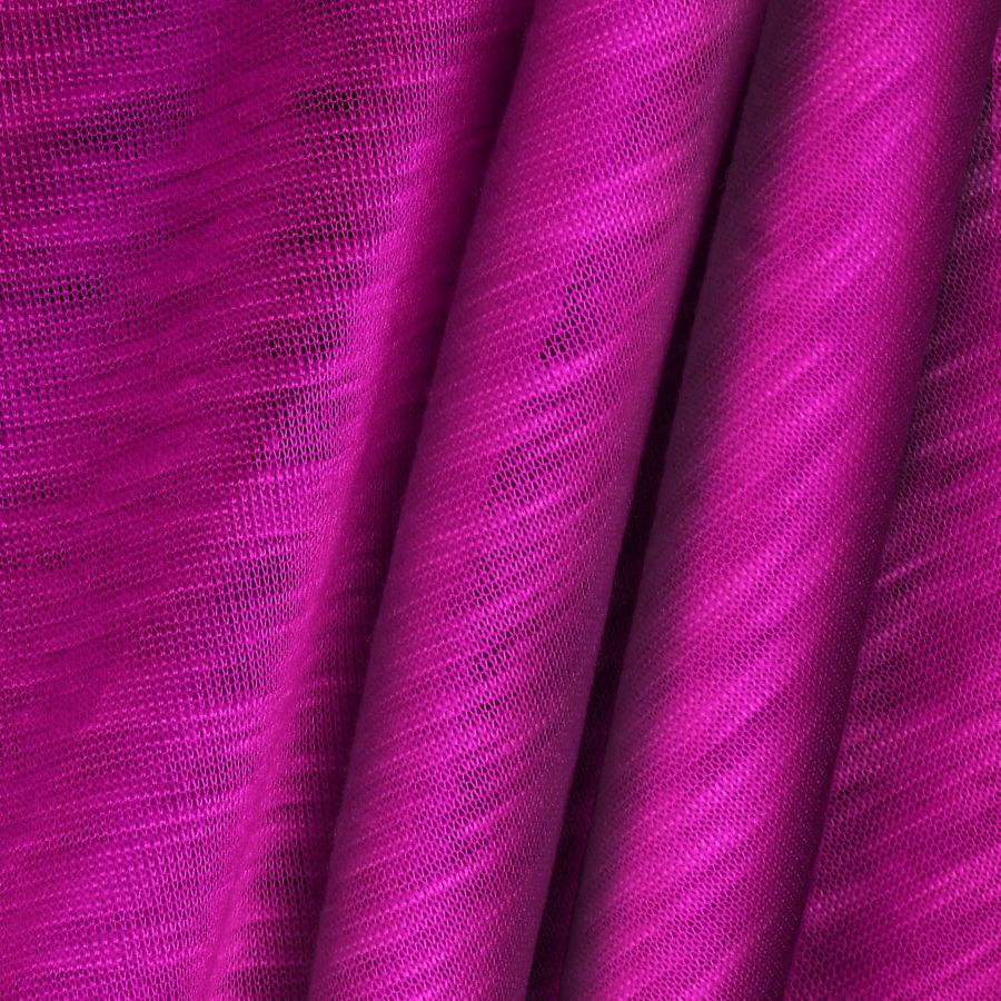 La tela base, Punto Camiseta Jaspeado - Dubái, compuesta por 100% poliéster, tiene un gramaje de 135 gr/m2 y un ancho de 160 cm. Su color liso impreso, Morado Ciruela Rosa, se consigue mediante la mezcla de tintas de cian (35%), magenta (100%), amarillo (1%) y negro (1%). Este color secundario resulta ideal para combinar con tonos ocre y amarillos, además de la gama completa de morados.