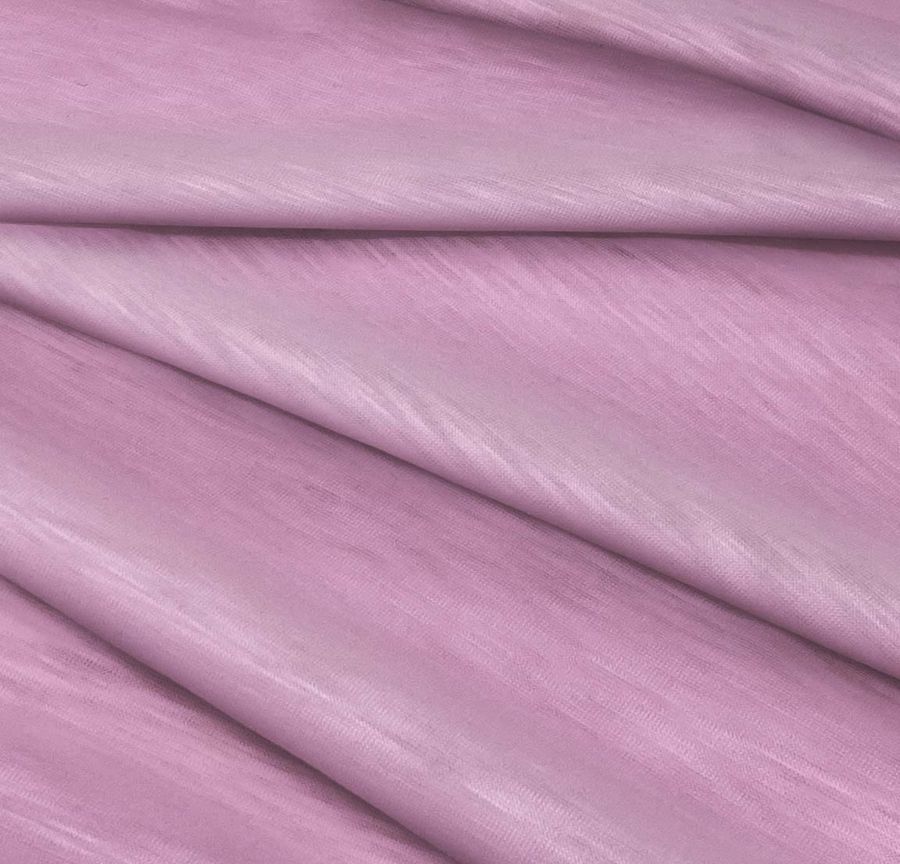 La tela base usada para este diseño es el Punto Camiseta Jaspeado - Dubái, una tela de punto de poliéster con un gramaje de 135 gr/m2 y una anchura de 160 cm. El color liso impreso en esta tela es una combinación de rosa y malva profundo, tal como se indica en el CMYK: 16 53 5 0. Este color secundario es muy versátil y transmite feminidad, calma y romanticismo, perfecto para prendas de moda femenina. Además, combina perfectamente con tonalidades claras y oscuras como el blanco, negro y gris, así como con tonos pastel como el rosa y malva más suaves.