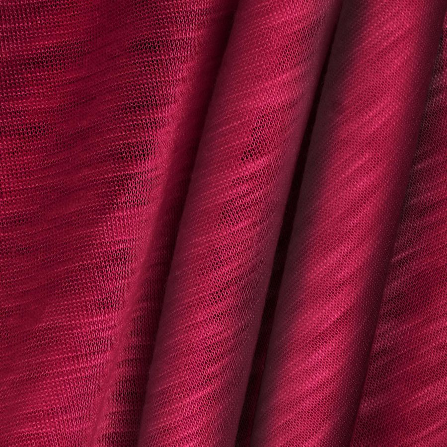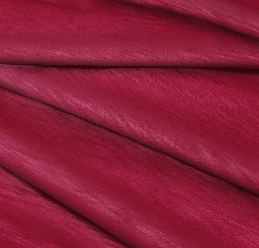 La tela base de esta prenda es Punto Camiseta Jaspeado - Dubái. El color liso impreso es un tono de rojo con tonalidades granate morado, compuesto por una combinación de tintas en el siguiente porcentaje: Tinta Cyan 29, Tinta Magenta 100, Tinta Yellow 61 y Tinta Black 35. Este color secundario tiene una simbología de pasión y elegancia, y se combina muy bien con tonos neutros como blancos, grises y negros, así como con tonos dorados y plateados.
