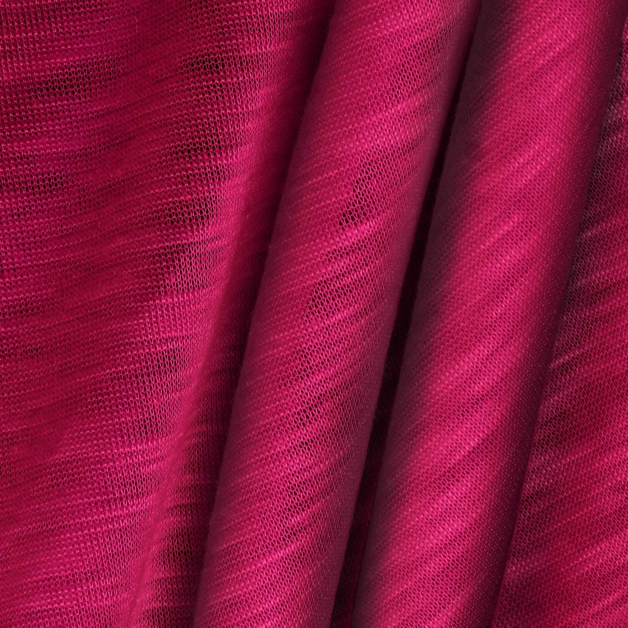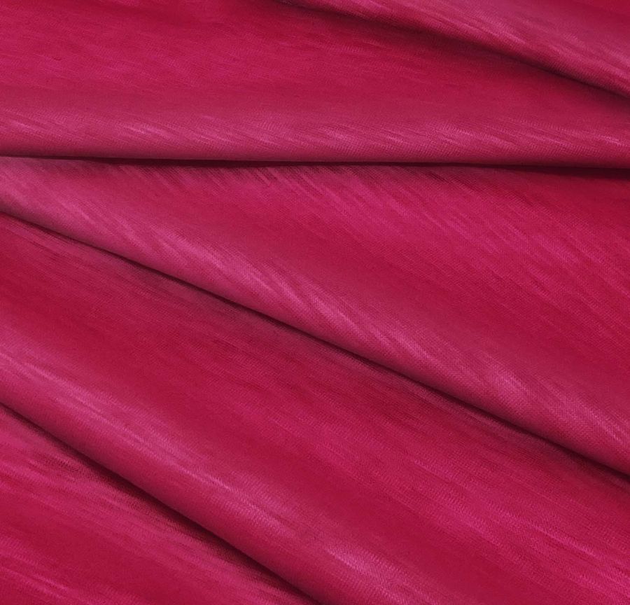 La tela base de este tejido es el Punto Camiseta Jaspeado - Dubái de 100% poliéster con un gramaje de 135 gr/m2 y un ancho de 160 cm. En cuanto a su color liso impreso, se trata de un rojo intenso con tintas cian, magenta y amarilla en alta proporción y un bajo porcentaje de tinta negra, tal y como refleja el CMYK 24 100 50 21. Este color simboliza la pasión y el dinamismo, y se combina especialmente bien con tonos naranjas, amarillos y morados.